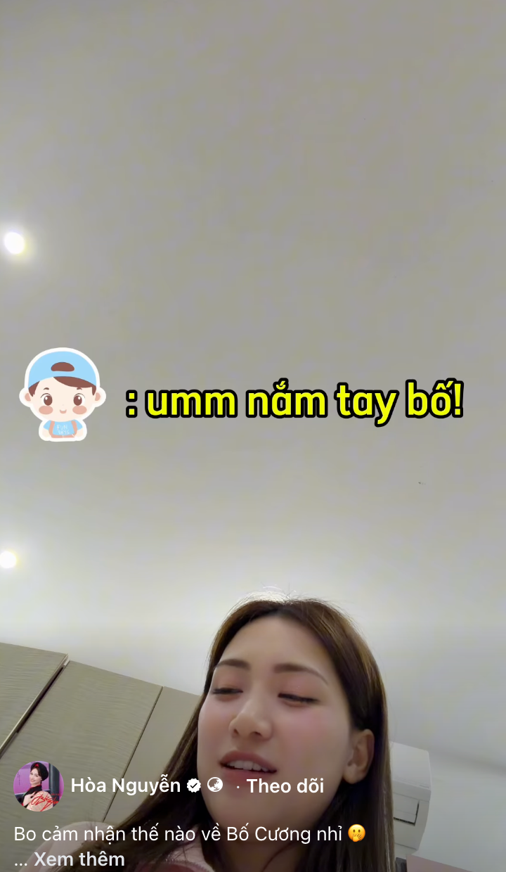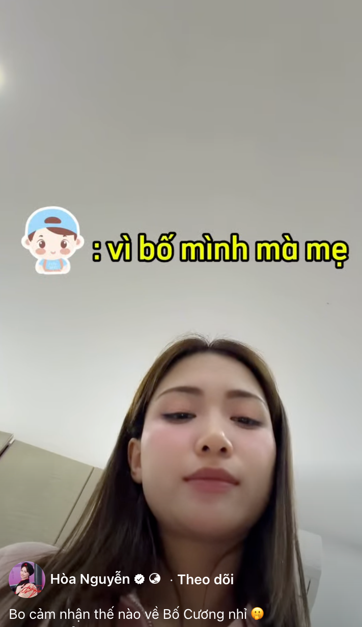 Khi câu chuyện tiếp tục, Hòa Minzy nhẹ nhàng hỏi con trai một điều mà có lẽ nhiều bậc cha mẹ đơn thân đều từng nghĩ đến: Mếu một ngày mẹ quyết định kết hôn, con sẽ cảm thấy thế nào. Điều bất ngờ là bé Bo gần như không cần suy nghĩ quá lâu. Với cậu bé, việc mẹ và "bố Cương" trở thành một gia đình dường như là điều rất tự nhiên.