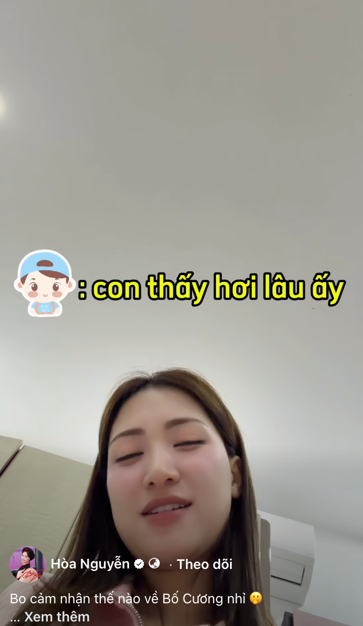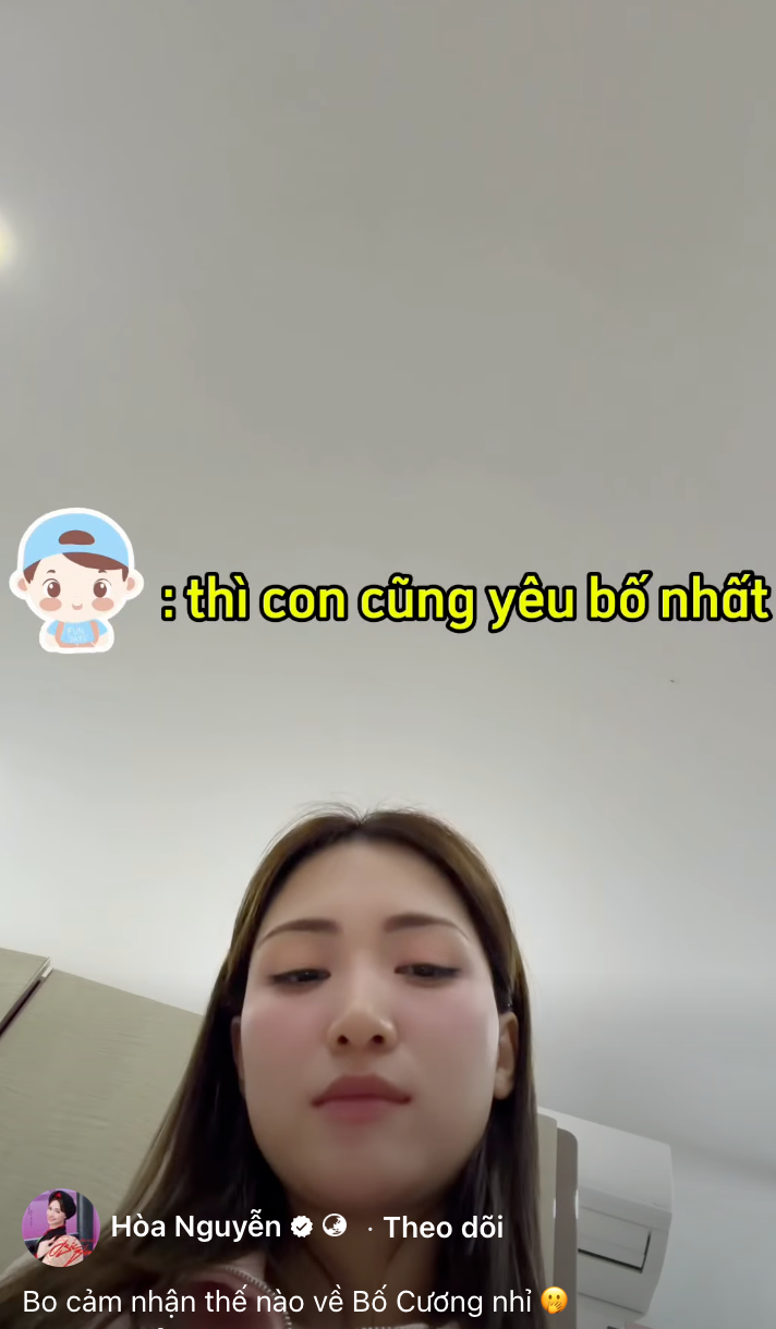 Hòa Minzy tiếp tục hỏi con trai: "Thế con bắt đầu cảm thấy yêu bố từ lúc nào?".