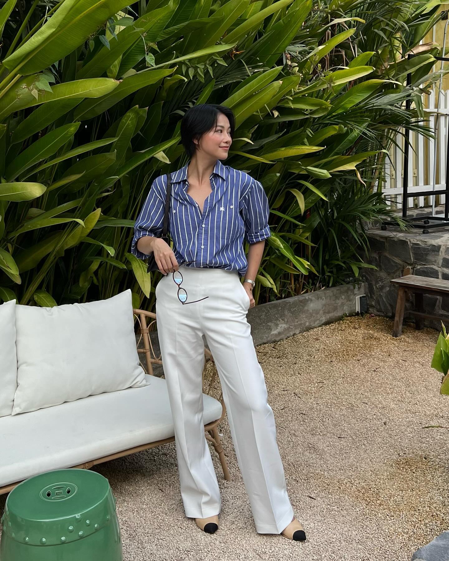 Quần trắng từng được xem là item "khó nhằn" vì dễ lộ khuyết điểm, nhưng với các mỹ nhân Việt, đây lại là món đồ được diện khá thường xuyên. Quần âu trắng, quần ống rộng hay quần jeans trắng đều xuất hiện trong nhiều outfit từ đời thường đến sự kiện. Nhờ cách chọn phom dáng khéo léo và chất liệu dày dặn, quần trắng giúp các sao nữ trông cao ráo và thanh thoát hơn.