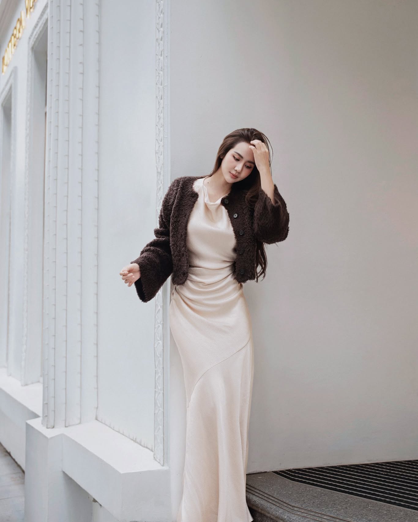 Trong đời thường, áo khoác trắng còn được phối cùng váy liền, quần short hay quần jeans để tạo nên phong cách trẻ trung, năng động. Dù là phong cách tối giản hay cầu kỳ, áo khoác trắng vẫn phát huy tốt vai trò làm sáng outfit và giúp người mặc nổi bật một cách tự nhiên.