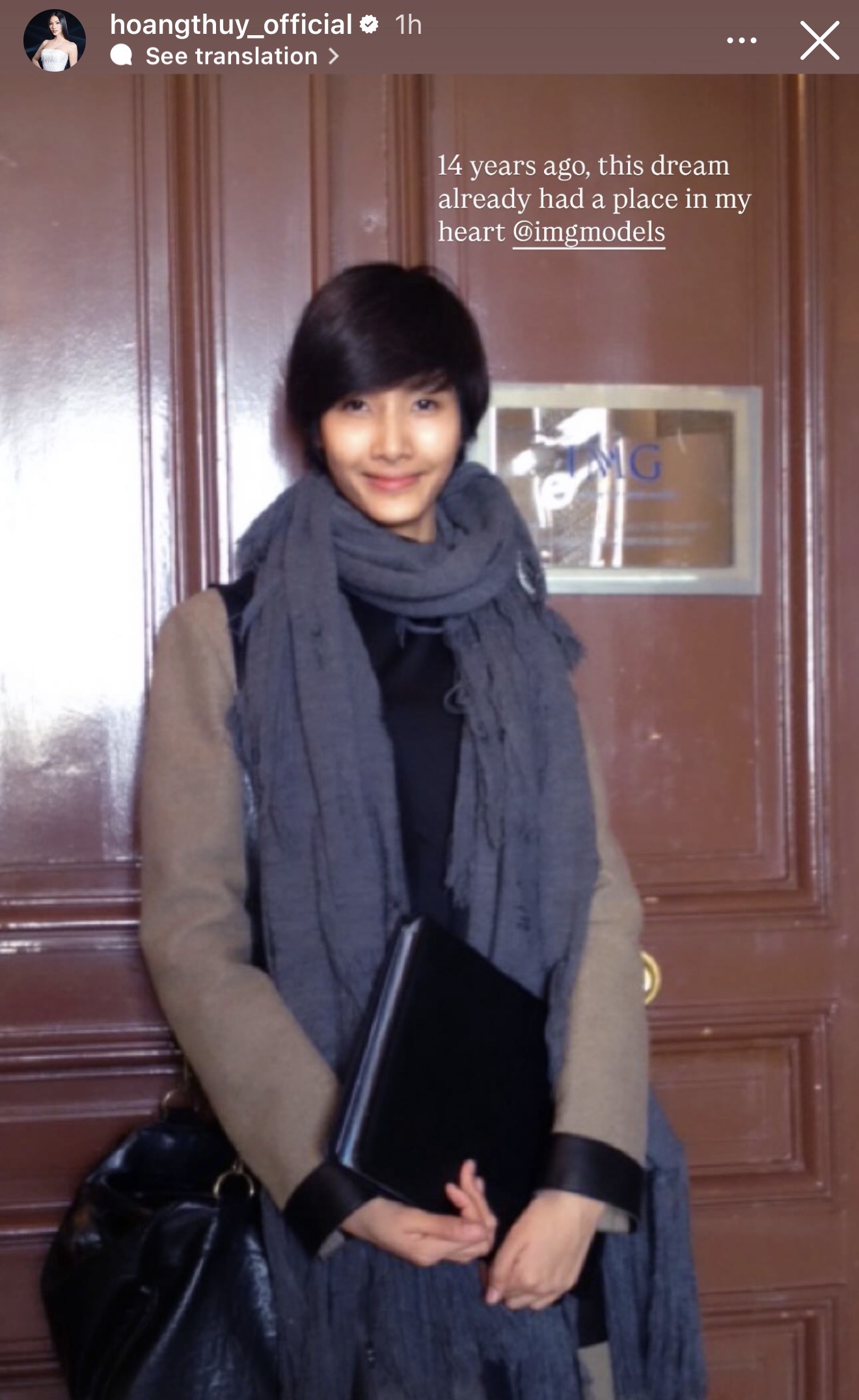 Hiện tại, phía nữ siêu mẫu chưa đưa ra bất kỳ phản hồi chính thức nào. Dù vậy, ngay khi các thông tin xuất hiện, netizen nhanh chóng phát hiện một động thái đáng chú ý của Hoàng Thuỳ, khi cô đăng tải lại hình ảnh từ 14 năm trước ở văn phòng IMG Models, kèm dòng caption: "14 years ago, this dream already had a place in my heart" (tạm dịch: 14 năm trước, giấc mơ này đã có một vị trí trong trái tim tôi).