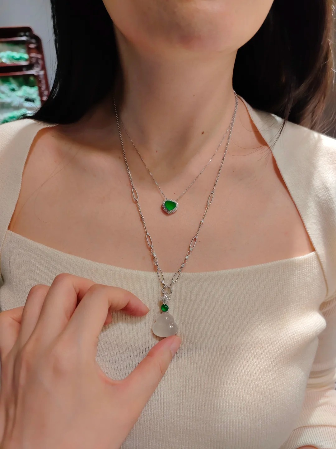 Chơi ngọc theo cách này mang lại hiệu ứng thị giác đỉnh cao, cao cấp hơn hẳn việc chỉ đeo lẻ loi một món. Nó không chỉ khéo léo chứng minh bạn là người có điều kiện kinh tế, mà quan trọng hơn, nó toát lên gu thẩm mỹ thượng thừa và sự tinh tế hiếm ai sánh bằng. Công thức phối ngọc vạn năng mà bạn cần khắc cốt ghi tâm ngay từ bây giờ chính là: Đeo so le một dài một ngắn để tạo bố cục không gian, kết hợp một lớn một nhỏ để cân đối tỷ lệ hình thể, và mix một màu đậm với một khối ngọc trong veo để nhân đôi sự sang trọng. Áp dụng chuẩn công thức này, đảm bảo khí chất của bạn sẽ được nâng tầm đến mức tối đa, bước ra đường là thu hút vạn ánh nhìn.