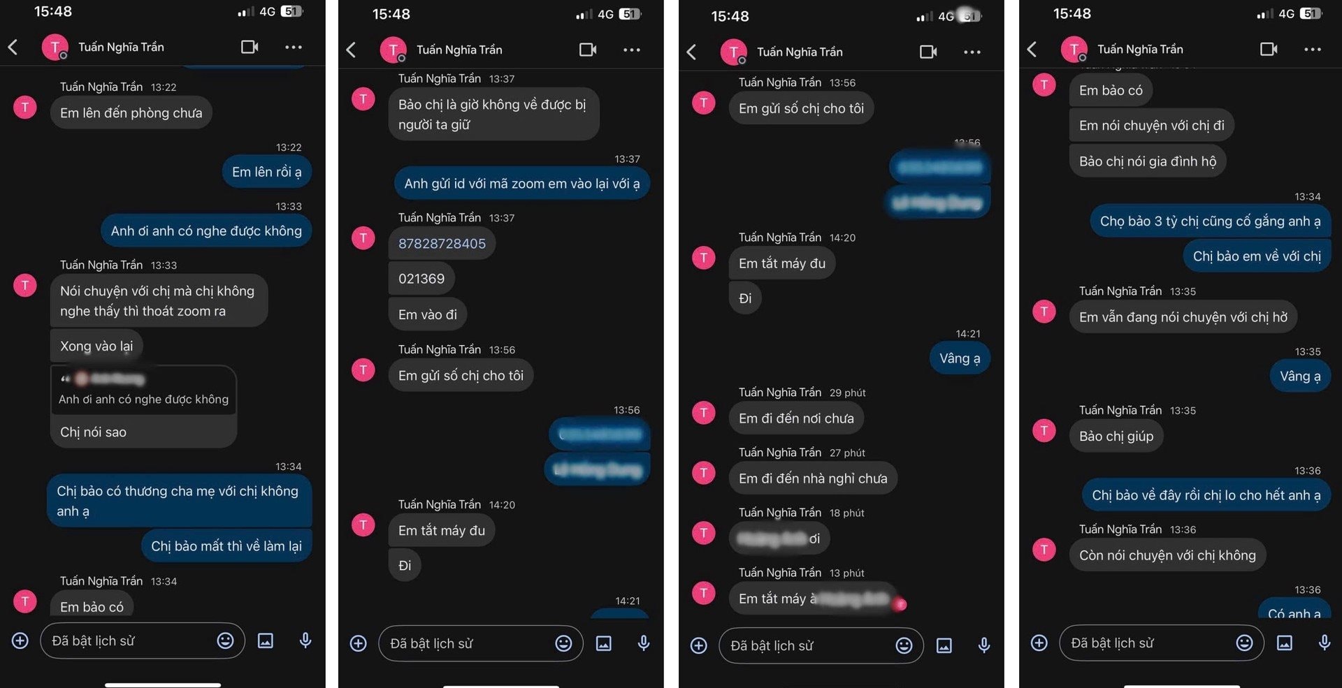 - Yêu cầu người bị hại tự cách li và cắt đứt liên lạc với gia đình, người thân (với lý do để đảm bảo tính bí mật của hoạt động điều tra).