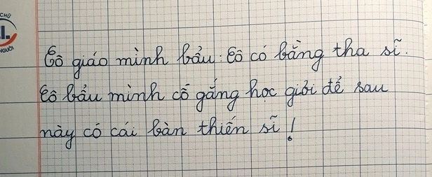 Thế nhưng, đằng sau tiếng cười rôm rả ấy là hình ảnh rất quen thuộc của tuổi học trò. Ở lứa tuổi tiểu học, trẻ mới chỉ đang làm quen với mặt chữ, việc nghe sao viết vậy, nhầm lẫn phụ âm, dấu thanh hay các từ ít gặp là điều khó tránh. Với các em, “tiến sĩ” là một khái niệm xa lạ, nên việc biến nó thành “thiến sĩ” cũng là một lỗi rất… vô tư và đúng kiểu trẻ con.