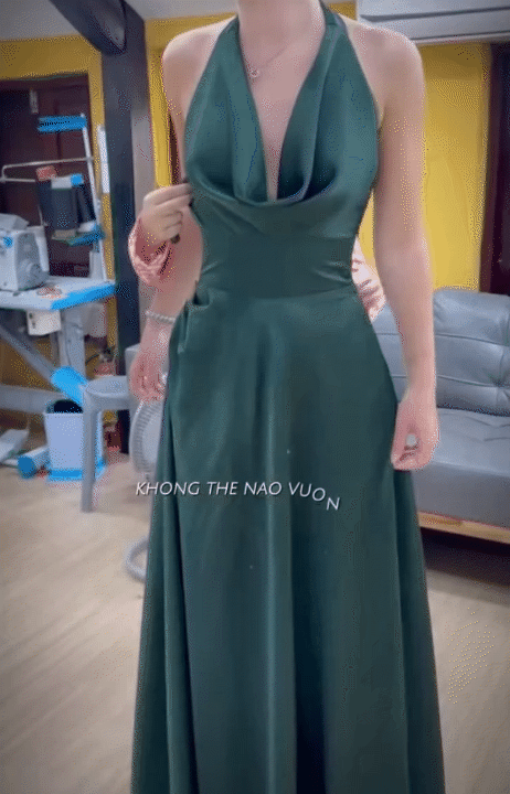 Bộ đầm lụa nhìn thì đơn giản nhưng để may lên dáng và tôn dáng người mặc lại không hề đơn giản chút nào. Thiết kế trần lưng với phần cổ yếm nhẹ nhàng khoe khéo tấm lưng trần và bờ vai mảnh mai của người mặc. (Nguồn: @bebetailor)