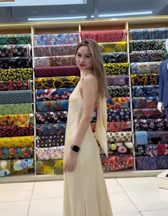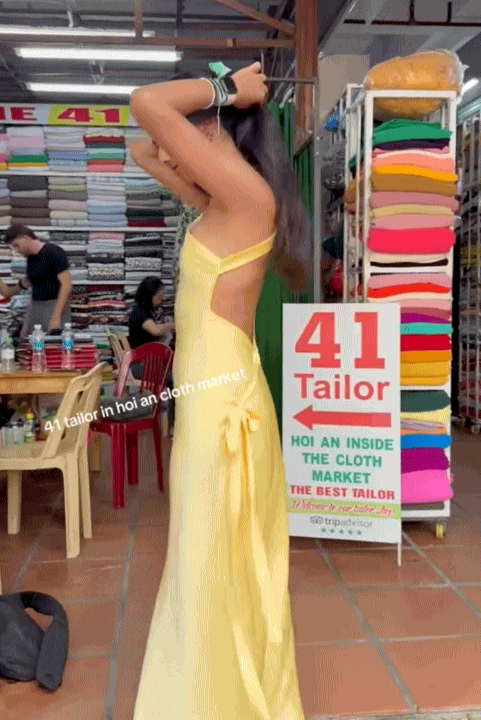 Cô nàng này đặt may một thiết kế đầm lụa trần lưng với gam màu vàng nhạt nhẹ nhàng tôn lên vóc dáng và làn da nâu rắn rỏi của mình. (Nguồn: @41tailorhoian)