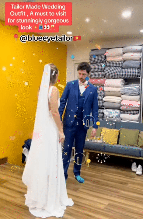 Thậm chí các chú rể cũng tìm đến những tiệm may ngay trong lòng phố cổ Hội An để may vest cưới cho ngày trọng đại. Ví dụ như bộ vest này chỉ mấy 24 tiếng để cắt may, mà mức giá cũng rất bình dân, chỉ khoảng 4,9 triệu/bộ. (Nguồn: @narcissa.may14)