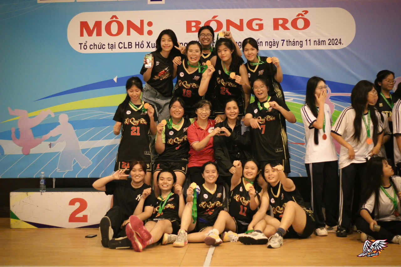 Thể thao là một thế mạnh nổi bật khác: Em là cựu đội trưởng đội tuyển bóng rổ nữ của trường. Trong suốt quá trình tham gia thi đấu, em đã đạt Giải Nhất thể dục thể thao cấp quận môn bóng rổ vào các năm 2023 và 2024; Huy chương Bạc bóng rổ Festival Trường học TP. HCM – Cúp Nestlé Milo 2024; Huy chương Vàng giải bóng rổ Năng khiếu – Trẻ trong hai năm 2023 và 2024; cùng với Huy chương Bạc bóng rổ Hội khỏe Phù Đổng toàn quốc 2024. Ngoài ra, em cũng đạt Giải Nhì thể dục thể thao cấp quận môn cờ vua đồng đội vào các năm 2023 và 2024.
