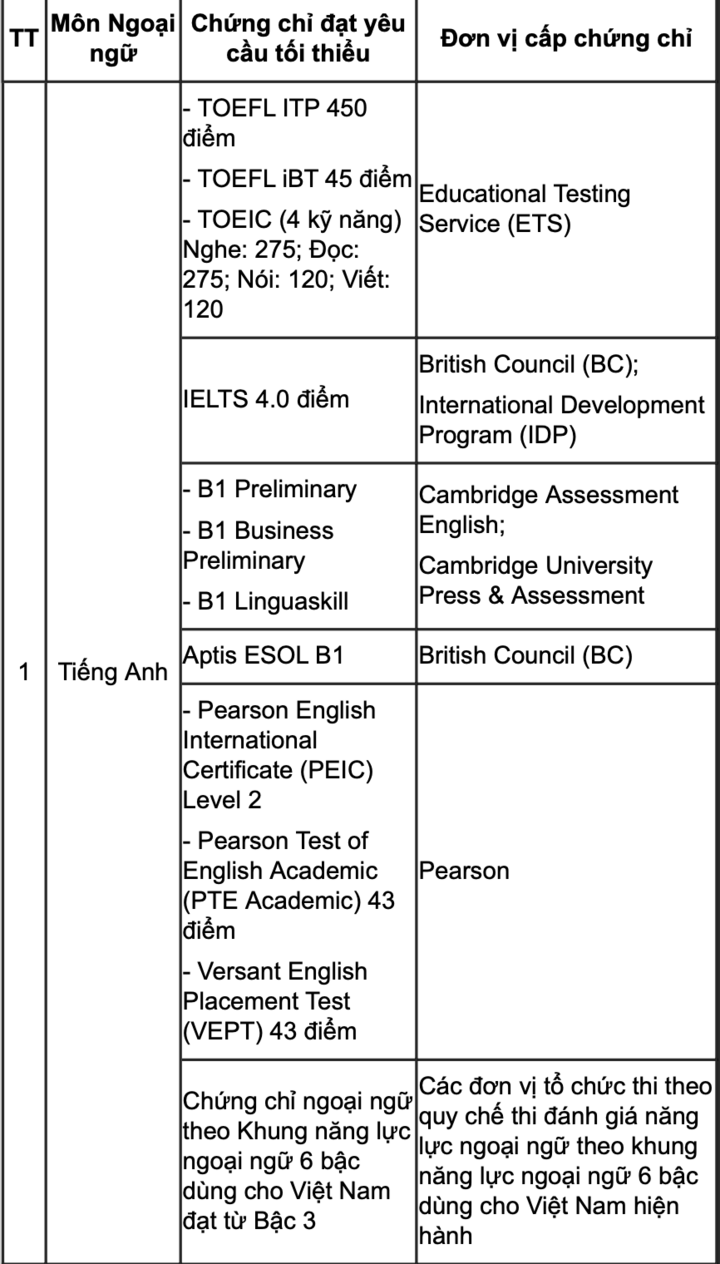 | Danh sách các chứng chỉ được miễn thi môn Ngoại ngữ trong thi tốt nghiệp THPT năm 2026 mới nhất |