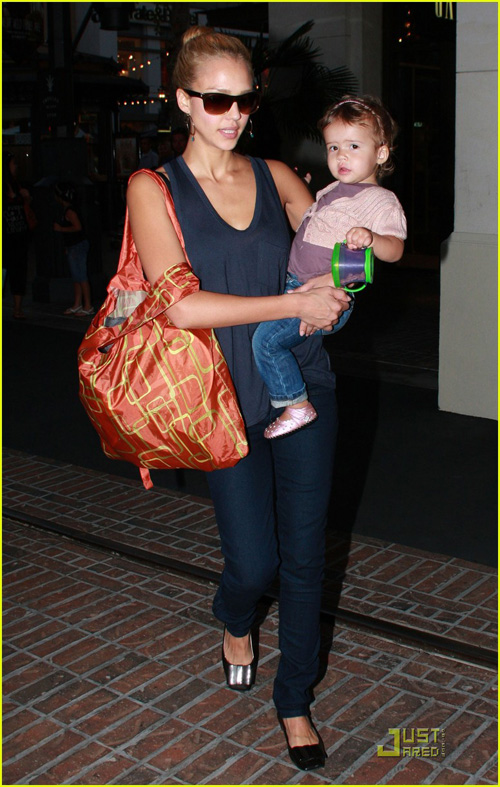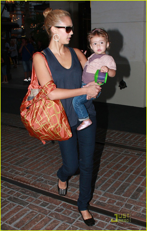 Jessica vừa trở về nhà tại California sau khi tham dự Tuần lễ thời trang tại New York vào ngày Thứ ba. Cô và con gái đã có buổi đi chơi rất vui vẻ bên nhau vào cuối tuần mà không có bố Waren. Cả hai mẹ con đều xinh đẹp, đáng yêu và là tâm điểm của cánh săn ảnh suốt một ngày thứ 6.