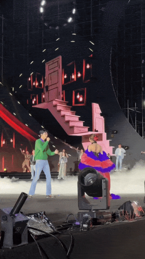 Cả 2 trao nhau ánh mắt tình tứ, nắm tay nhau bước đi trên sân khấu