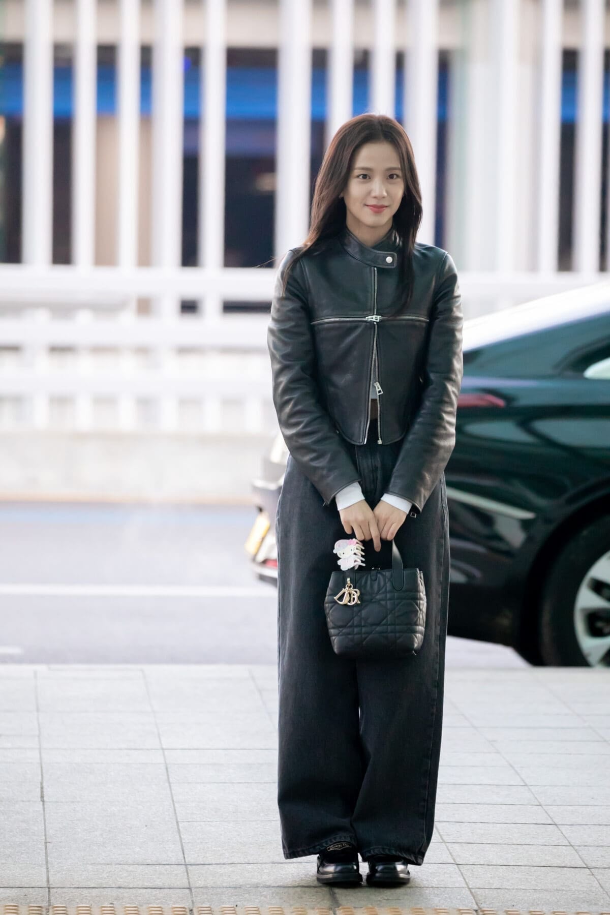 Jisoo thường chọn quần ống suông có độ rộng vừa phải, chất liệu rủ nhẹ để không làm cơ thể bị "nuốt dáng". Phần áo lửng có thể là áo thun, áo len mỏng, cardigan lửng hoặc áo khoác da lửng. Những chiếc áo khoác dáng ngắn này không chỉ giúp giữ ấm mà còn chia tỷ lệ cơ thể rất đẹp, đặc biệt khi mặc cùng quần cạp cao.