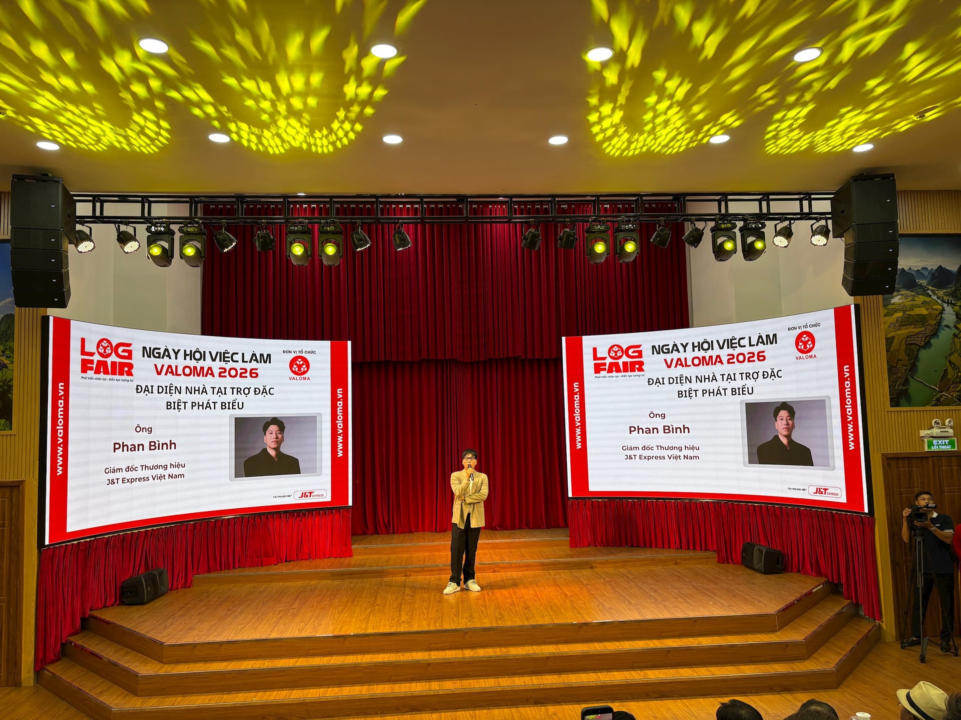 Ông Phan Bình - Giám đốc Thương hiệu J&T Express Việt Nam, tham gia giao lưu cùng sinh viên tại Ngày hội việc làm VALOMA 2026 ở điểm cầu TP.HCM.