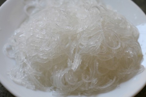 - Ngâm miến: Rửa sạch và ngâm miến dong trong nước lạnh khoảng 15 phút đến khi mềm. Sau đó vớt ra và cắt thành từng đoạn ngắn (miến quá dài sẽ khó gắp).