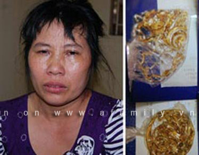 Nguyễn Thị Huệ và số vàng được thu hồi.
