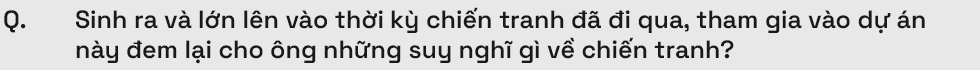 Từ khi còn nhỏ, những người lớn trong nhà cũng thường kể lại những ký ức ở chiến trường. Bác và bố tôi cũng là bộ đội Trường Sơn. Mặc dù không trải qua chiến tranh nhưng những câu chuyện đó cũng ảnh hưởng sâu sắc đến tôi. Sau này, lớn lên, đi học, đi làm, đi các nước, tôi thấy rằng cuộc chiến tranh vệ quốc của ông cha vĩ đại quá! Dân tộc ta đã vững vàng được trong nhiều cuộc chiến thì chẳng có lý do gì lại khuất phục những khó khăn trong thời bình và thua kém bất cứ dân tộc nào trên thế giới.