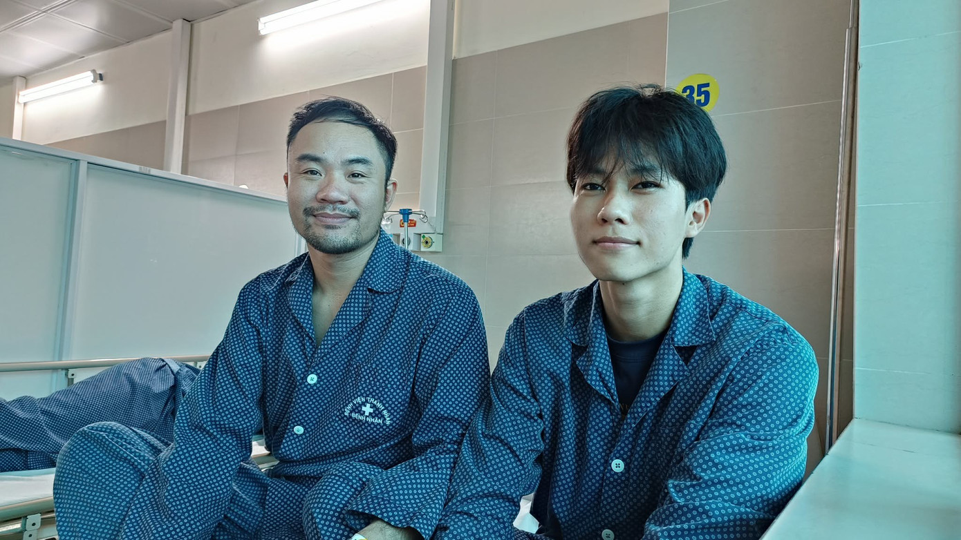 Sau đám cháy, Tú (bên phải) được đưa đến bệnh viện theo dõi sức khỏe