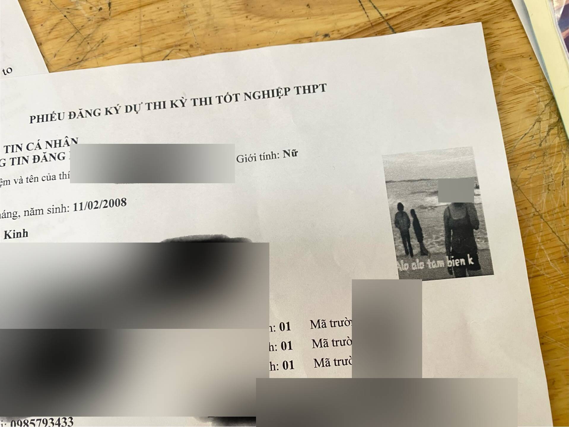 Mới đây, một nữ sinh cuối cấp chia sẻ hình ảnh phiếu đăng ký dự thi tốt nghiệp THPT của mình, kèm theo lời giải thích khá vô tư: "Mình nghe lời người yêu cũ bảo là dùng ảnh nào đăng ký cũng được, trường không quan tâm đâu. Mọi người đừng như mình!".