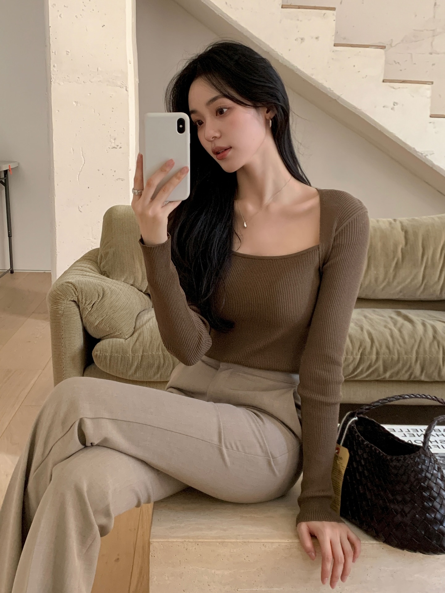 Đây là combo hoàn hảo cho môi trường công sở. Áo len màu trung tính phối cùng quần âu ống suông giúp tạo nên vẻ ngoài chỉn chu nhưng vẫn thoải mái. Một chiếc áo len cổ tròn hoặc cổ tim màu xám nhạt đi cùng quần âu đen, nâu hoặc xám đậm sẽ giúp bạn trông vừa gọn gàng vừa chuyên nghiệp.