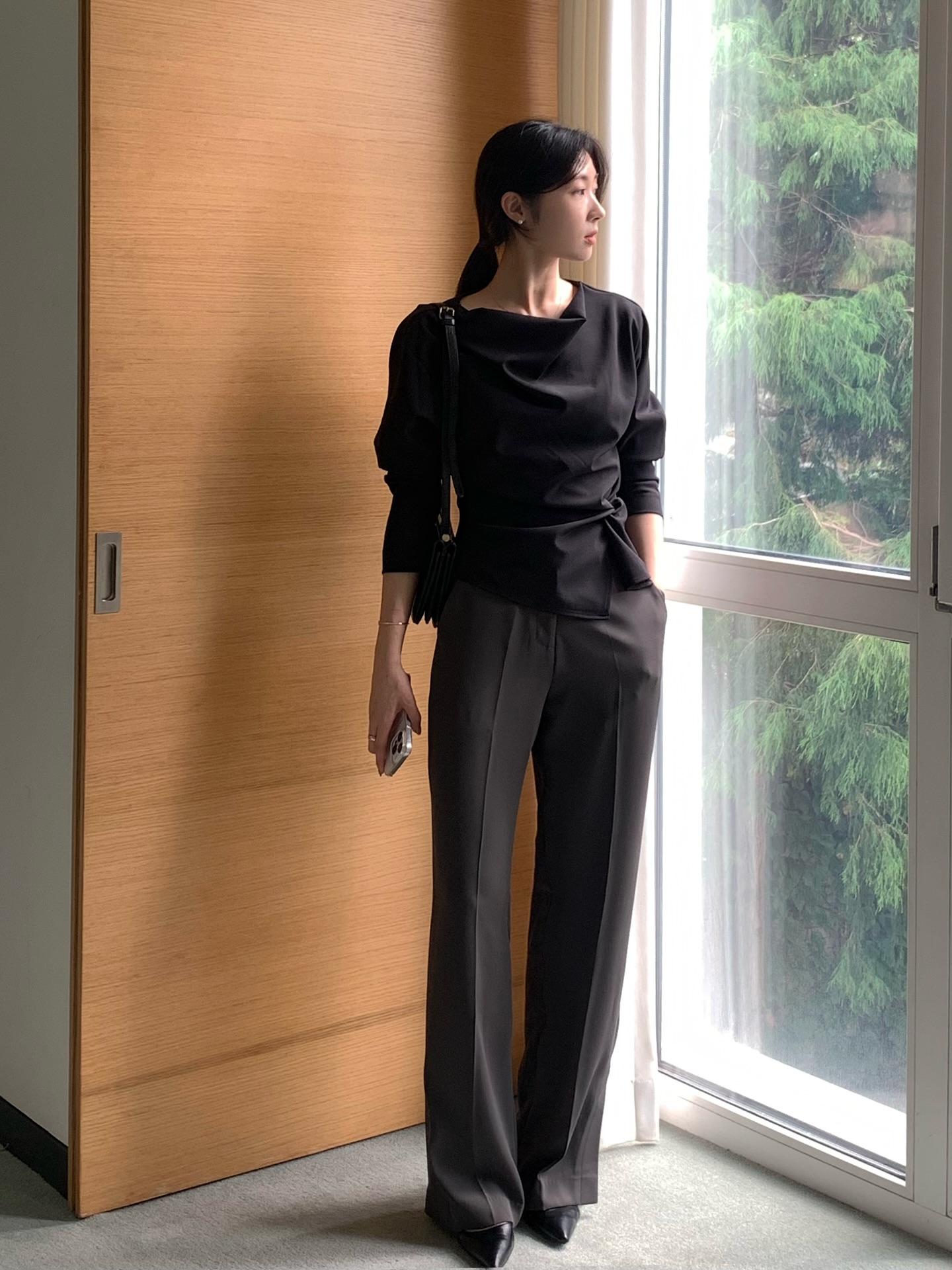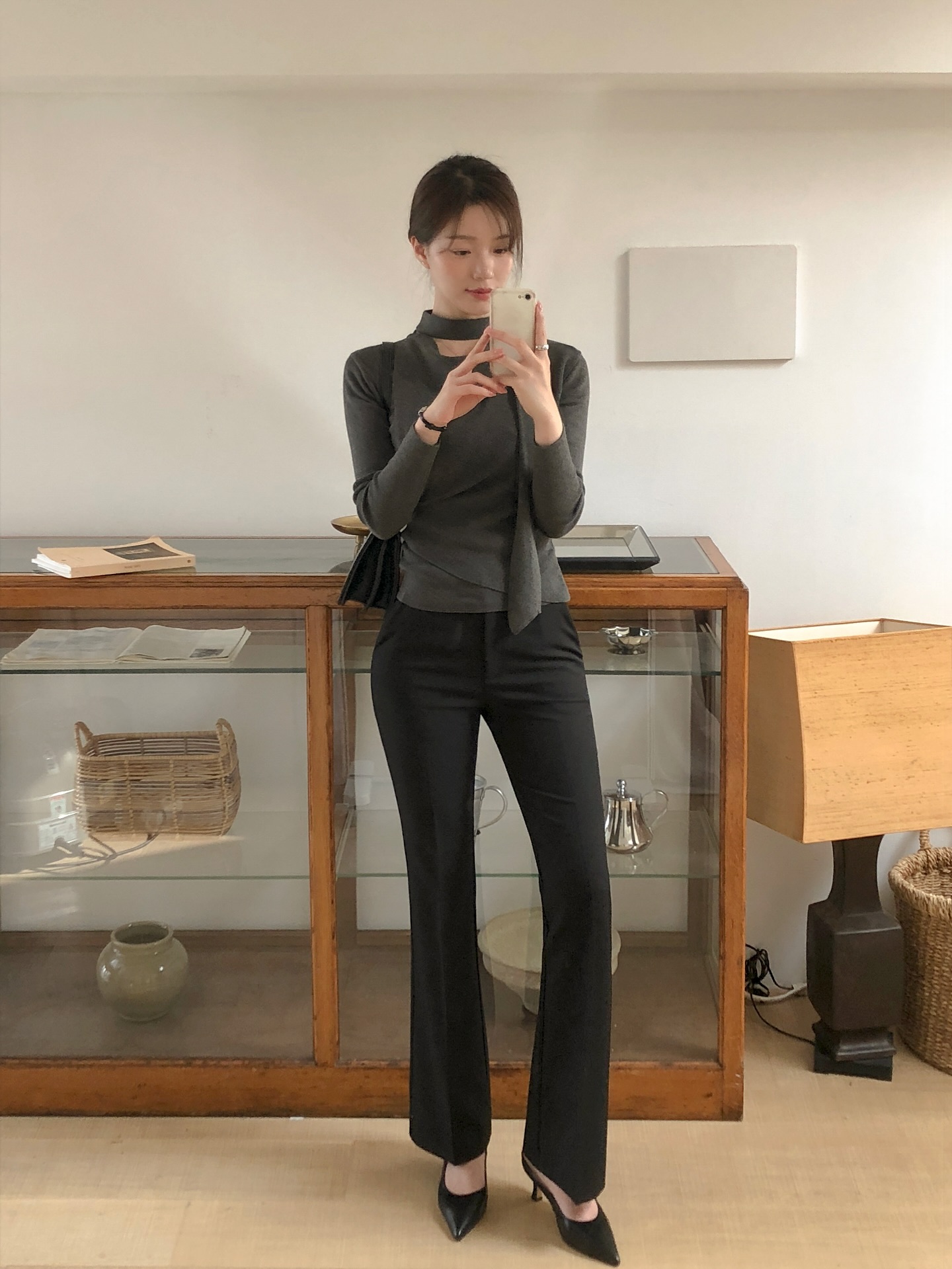 Màu đen vốn đã có khả năng thu gọn hình thể, khi kết hợp với phom ống vẩy lại càng phát huy tác dụng. Kiểu quần này đặc biệt phù hợp với những ai có dáng người thấp hoặc chân không quá dài. Khi phối cùng giày cao gót mũi nhọn hoặc boots gót thấp, hiệu ứng kéo dài chân càng rõ rệt. Để tránh cảm giác "dừ", nên chọn quần có độ loe vừa phải, chất liệu đứng form và độ dài chạm mắt cá chân.