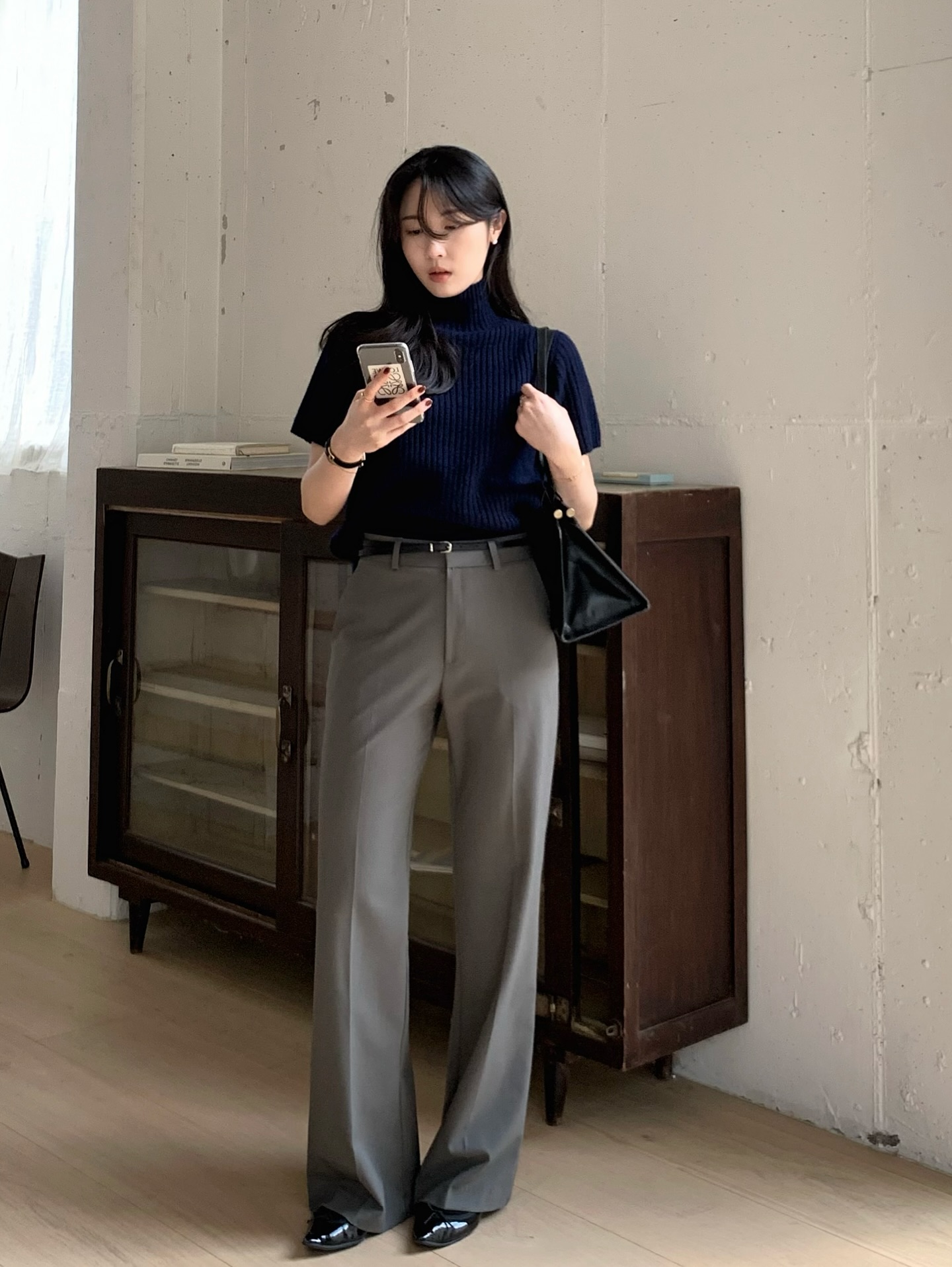 Quần âu ống suông vừa phải đặc biệt phù hợp với môi trường công sở, nơi yêu cầu sự lịch sự nhưng vẫn cần tính thời trang. Những gam màu trung tính như xám, be, nâu nhạt hay xanh navy không chỉ dễ phối đồ mà còn giúp tổng thể trông nhẹ nhàng, thanh thoát. Khi phối cùng áo blazer hoặc áo len mỏng, bộ trang phục sẽ mang lại cảm giác chuyên nghiệp mà không hề cứng nhắc. Lưu ý nhỏ là nên tránh quần có ly quá to hoặc chất liệu quá mềm, vì dễ làm mất form và khiến chân trông kém gọn.