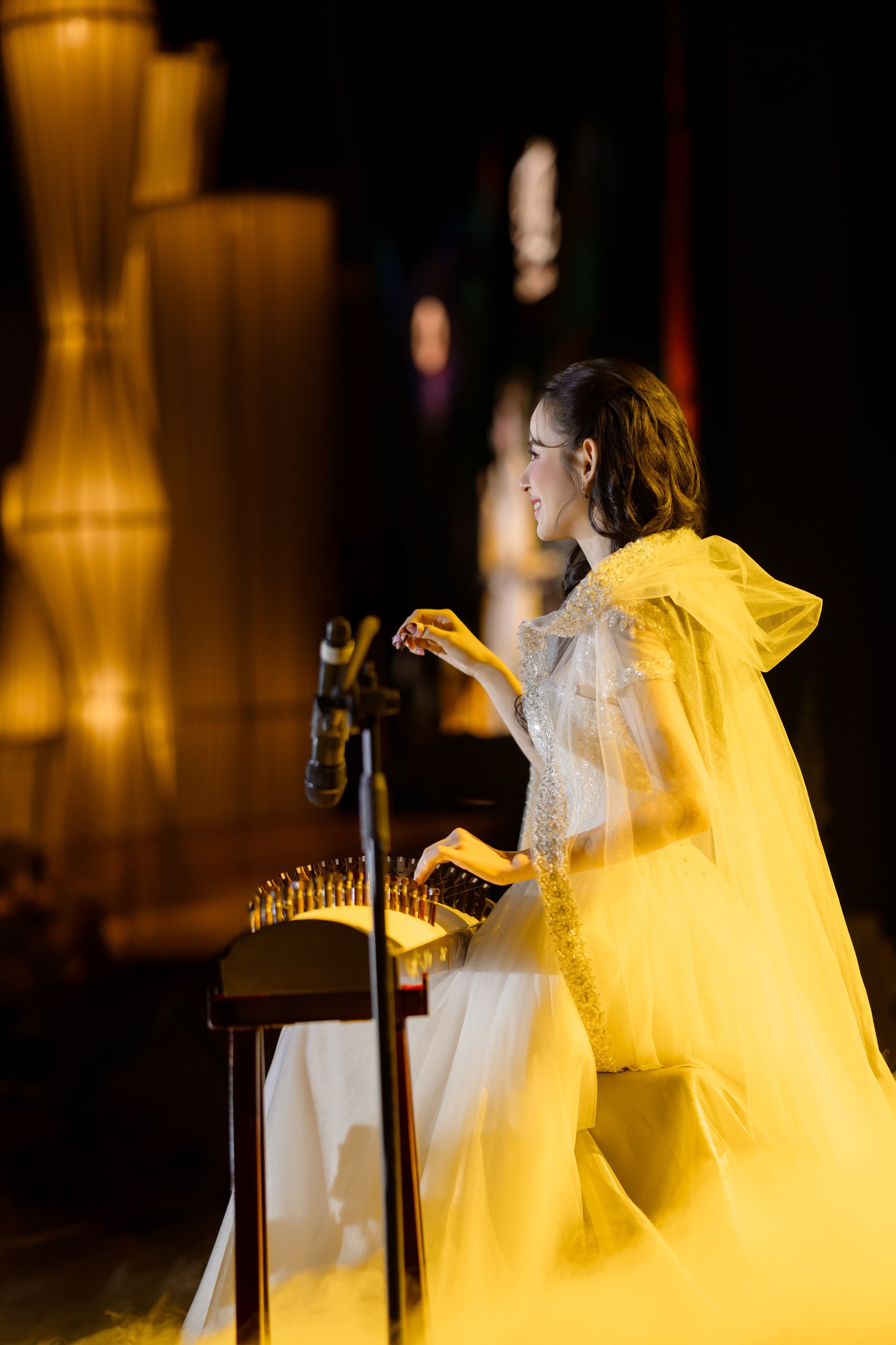 Cô dâu Hương Liên khiến ai cũng khó thể ngờ đến khi đích thân biểu diễn một tiết mục đàn tranh. Tiết mục này của cô dâu thể hiện thông điệp tích cực, lan toả tinh thần hiện đại nhưng vẫn không quên đi bản sắc văn hóa Việt Nam. Để có 4 phút đặc biệt trên sân khấu trong ngày vui này, cô dâu tập luyện miệt mài trong 1 tháng.