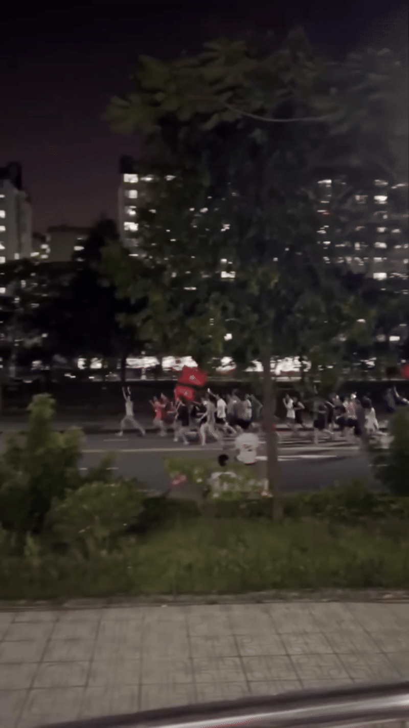 Theo hình ảnh trong clip, con đường trước khu ký túc xá đêm Việt Nam vô địch gần như “không ngủ”. Hàng trăm bạn trẻ ùa ra ngoài, tay cầm cờ Tổ quốc, miệng hô vang “Việt Nam vô địch”, tạo nên một khung cảnh vừa náo nhiệt vừa rất… sinh viên. Có người chạy xe máy vòng quanh khu vực, có nhóm thì đứng thành hàng dài vẫy cờ, có bạn còn mang loa kéo xuống để bật nhạc cổ vũ.