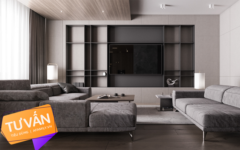 Kệ tivi và cách chọn đèn phòng khách khá thông minh của KTS.