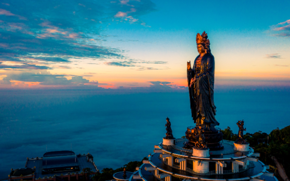 Trên đỉnh núi là một quần thể các công trình tâm linh kỳ vĩ, nổi bật với bức tượng Phật Bà Tây Bổ Đà Sơn cao nhất Châu Á. Dưới chân đại tượng Phật là một khu triển lãm Phật giáo 4 tầng, nơi du khách có thể khám phá thế giới Phật giáo qua các công nghệ hiện đại hàng đầu thế giới như trình chiếu video 3D mapping, công nghệ Hologram, hay chiêm ngưỡng các phiên bản mô phỏng các tác phẩm Phật giáo kinh điển của Việt Nam và thế giới.
