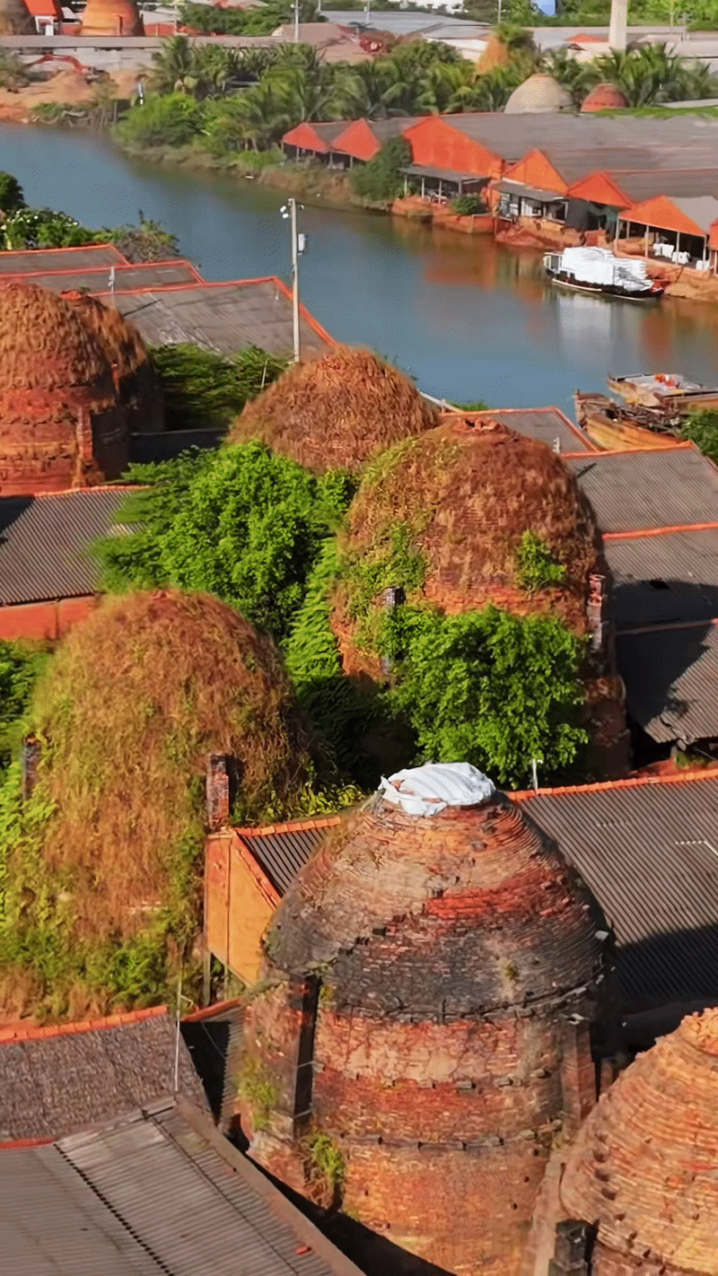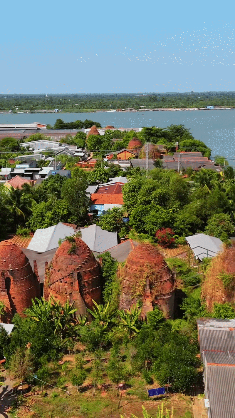Xuôi dòng về Vĩnh Long, đi dọc theo những con nước hiền hòa của sông Cổ Chiên và sông Mang Thít, bạn sẽ ngỡ ngàng khi bắt gặp một khung cảnh kỳ vĩ hiếm nơi nào có được. Vô số lò gạch, gốm với sắc đỏ au vươn lên giữa nền trời xanh, nhìn từ xa trông như những cây nấm khổng lồ đang mọc san sát nhau dọc bờ sông.