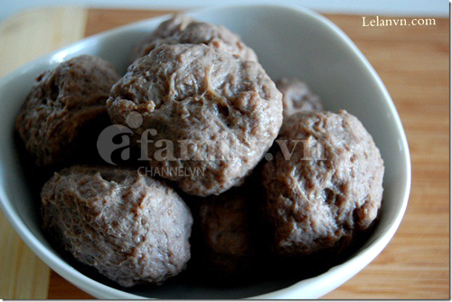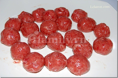 Bắc nồi nước đun sôi pha với chút muối, cho thịt đã vò viên vào luộc khi thấy thịt nổi lên và để khoảng 2 phút sau thì thịt chín đều.