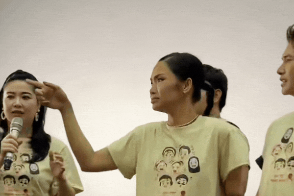 Phía bạn khán giả cũng tiếp thêm lời: " Trong cái phim này chị đã diễn không còn đơ nữa, chị diễn đúng nhân vật, đúng tâm lý chị ơi" . Nghe đến đây, Miu Lê tiếp lời: " Miu không phải là diễn viên chuyên nghiệp, nhưng mà cái từ đơ cứng là lần đầu nghe" , rồi bất ngờ vờ bật khóc và chạy thẳng ra khỏi rạp. Màn bỏ chạy này khiến cả khán phòng cười nghiêng ngả, biến phần giao lưu thành khoảnh khắc giải trí cực mạnh giữa khán giả và dàn cast.
