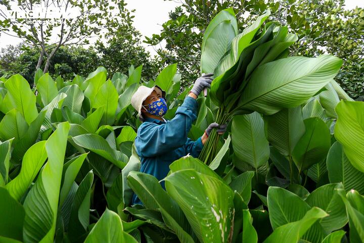 Những ngày này, làng Tràng Cát lúc nào cũng đông người ở vườn để hái lá dong.