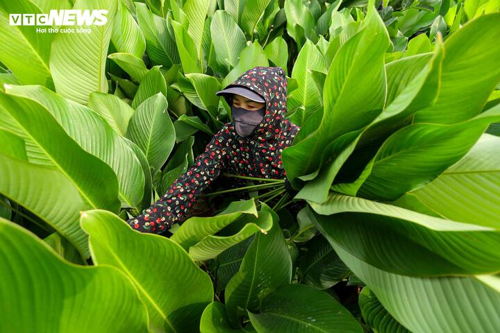Gia đình bà Xuân có 2 mẫu ruộng trồng lá dong. Những ngày cận Tết, đơn hàng tăng đột biến khiến gia đình bà, cũng như nhiều hộ trong làng, phải thuê thêm nhân công để kịp thời cắt lá. “Thời điểm này hầu như không có ngày nghỉ, mưa hay nắng đều phải làm. Bù lại, thu nhập dịp cận Tết khá hơn, trừ chi phí mỗi mẫu lãi khoảng 15–20 triệu đồng”, bà Xuân chia sẻ.