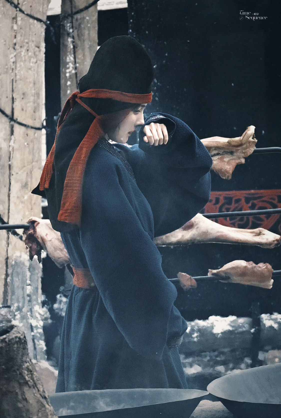 Dưới ống kính của các "thợ săn ảnh", nàng tiểu hoa đán xuất hiện với gương mặt gần như mặt mộc để phù hợp với hình tượng cung nữ thanh thuần. Thế nhưng, nỗ lực "cưa sừng làm nghé" này lại phản tác dụng khi các nếp nhăn lộ rõ, khiến cư dân mạng không ngần ngại để lại những bình luận cay nghiệt như "nhìn như thiếu phụ 50 tuổi" hay "nhà ai mà để thiếu phụ đóng vai thiếu nữ thế này". Thay vì toát lên vẻ trẻ trung của một thiếu nữ mới lớn, tạo hình với trang phục vải thô và khăn trùm đầu lại khiến nữ diễn viên trông già nua và mệt mỏi, dẫn đến nhiều ý kiến thắc mắc về việc tại sao đoàn phim không lựa chọn diễn viên trẻ cho giai đoạn đầu đời của nhân vật.