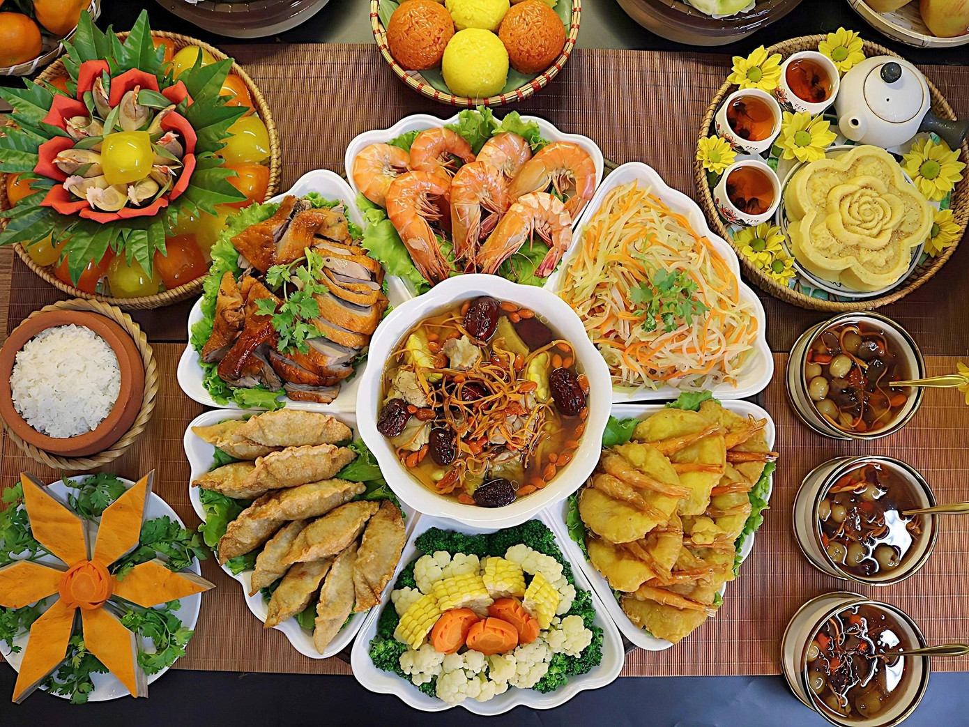 Mâm cỗ thịnh soạn dâng lên Táo Quân.