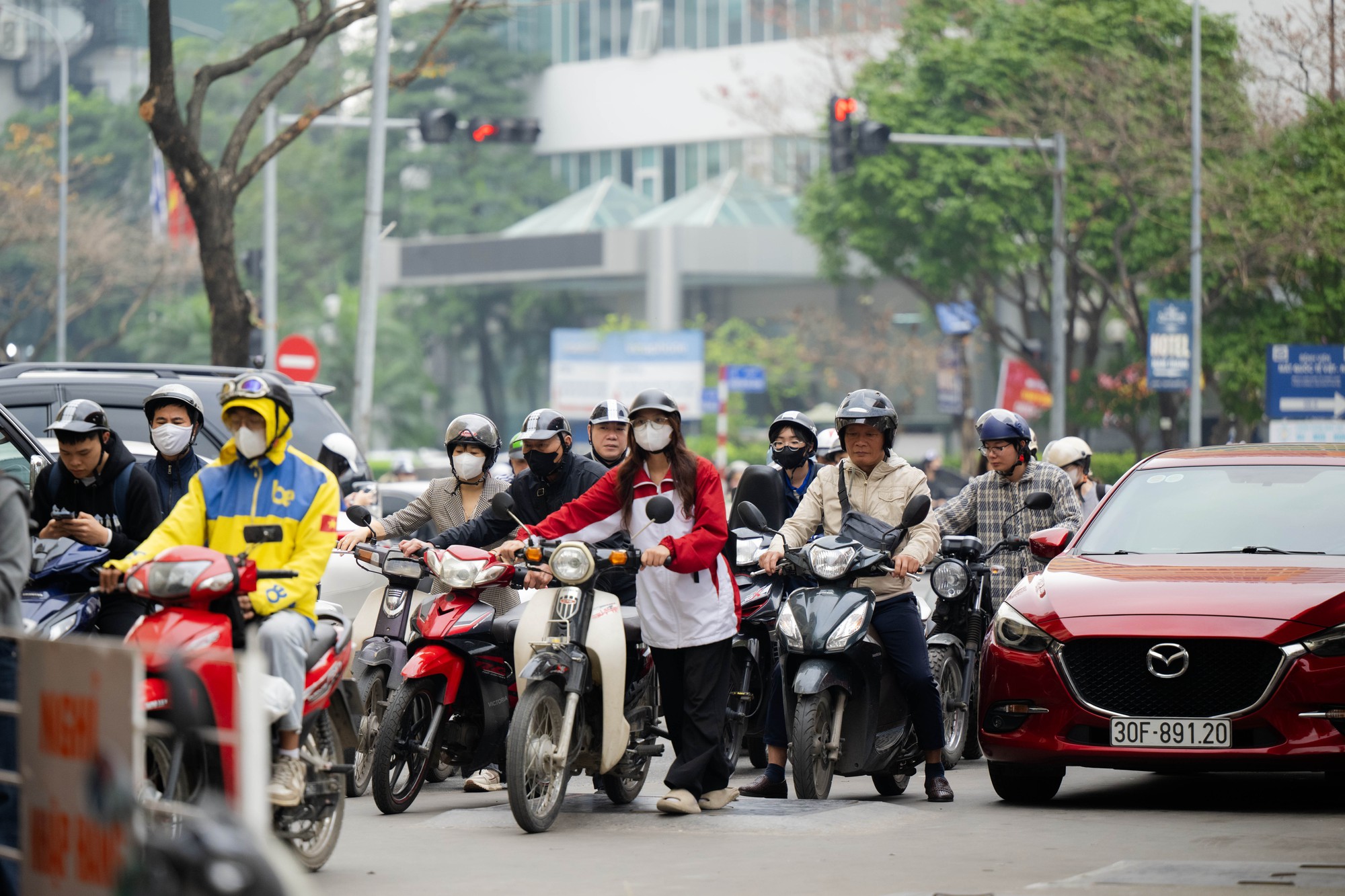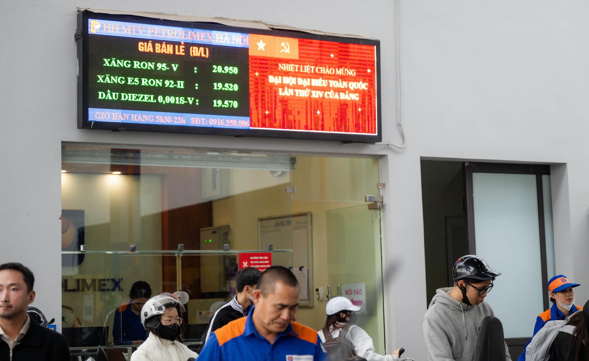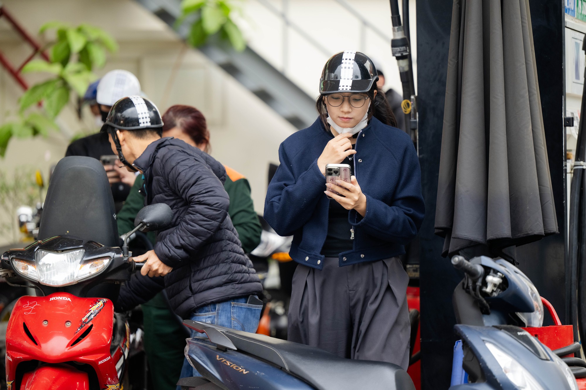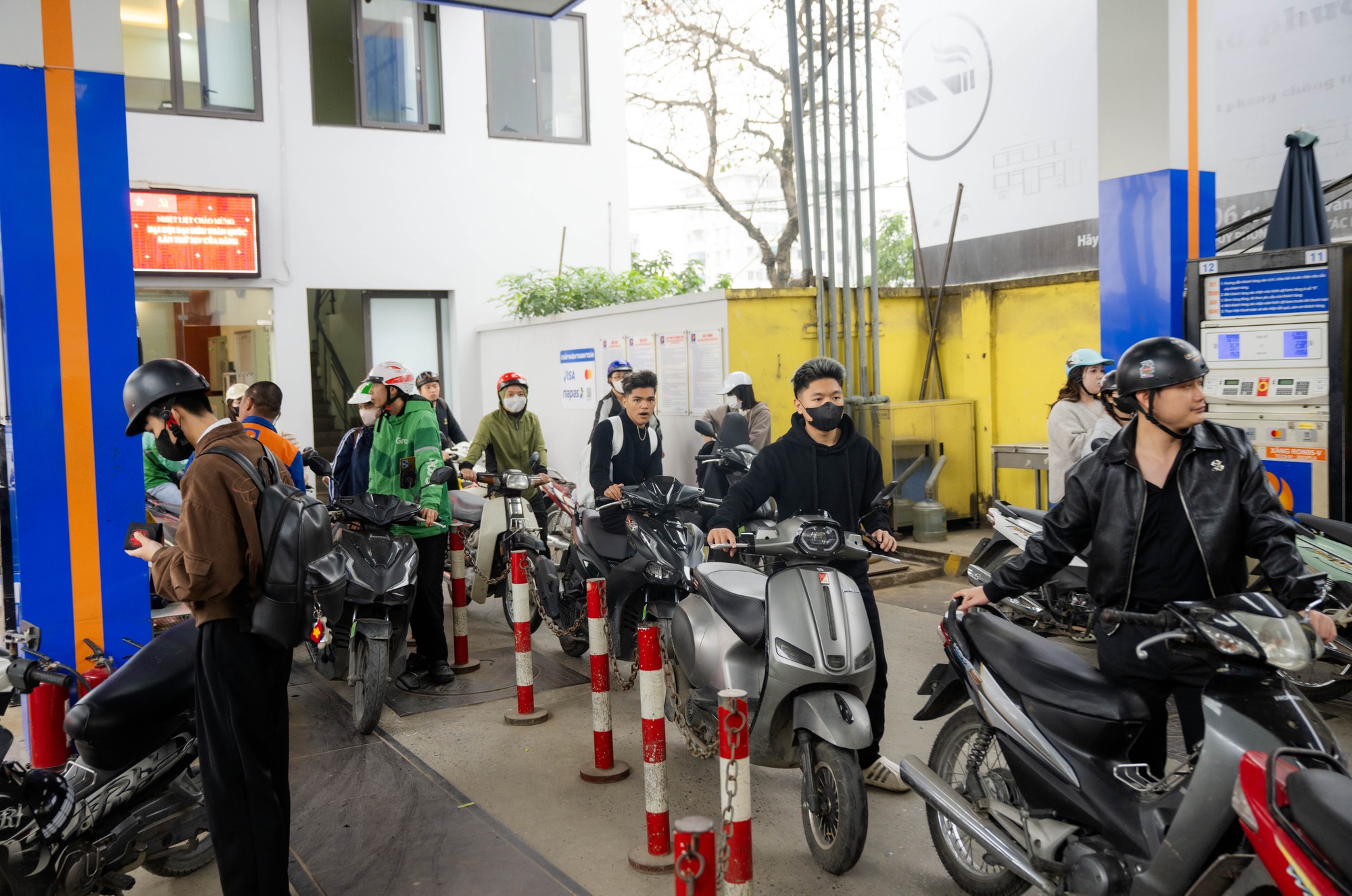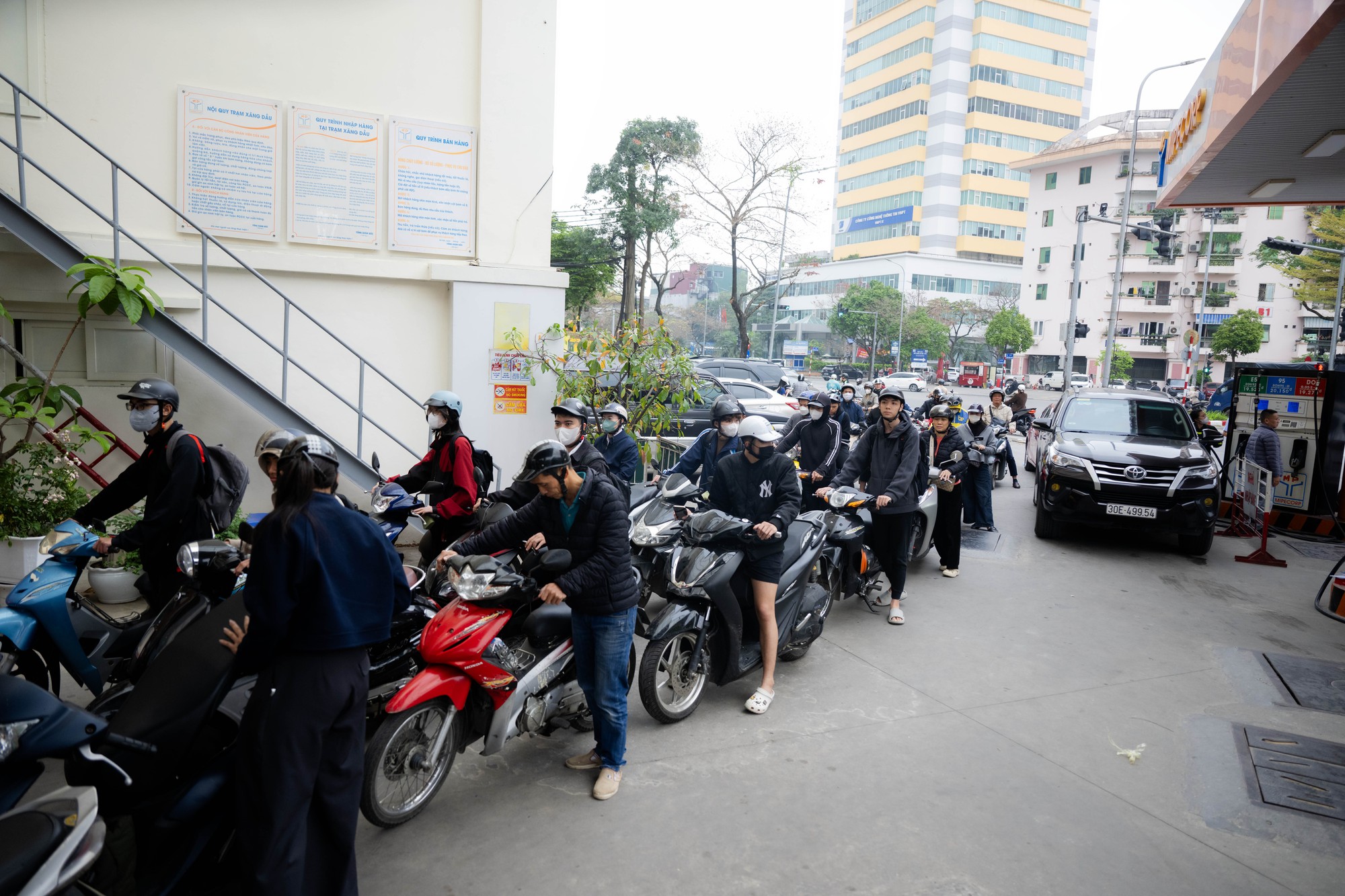 Khoảng 12h30, tại một cửa hàng xăng dầu trên đường Nguyễn Phong Sắc (quận Cầu Giấy), nhiều xe máy nối đuôi nhau chờ đến lượt đổ xăng. Lượng phương tiện ra vào liên tục khiến khu vực trước cửa hàng đông hơn thường lệ. Nhân viên tại các cột bơm làm việc liên tục để phục vụ khách, thời gian chờ của mỗi lượt đổ xăng cũng kéo dài hơn so với ngày bình thường.