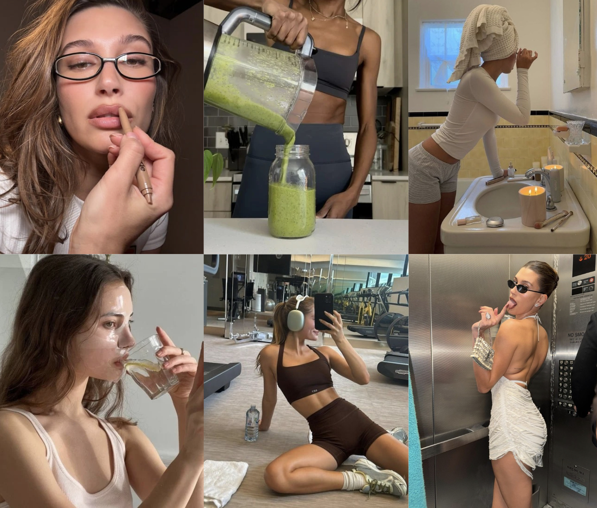 Không dừng lại ở ngoại hình, clean girl còn gắn với hình ảnh một cô gái sống kỷ luật: Dậy sớm, tập luyện, skincare kỹ lưỡng, uống nước ép, ăn đồ healthy. Tất cả tạo nên một hình mẫu phụ nữ có gu thẩm mỹ rõ ràng và lifestyle nhất quán, được đại diện bởi những cái tên Hollywood như Hailey Bieber, Kendall Jenner hay Zendaya...