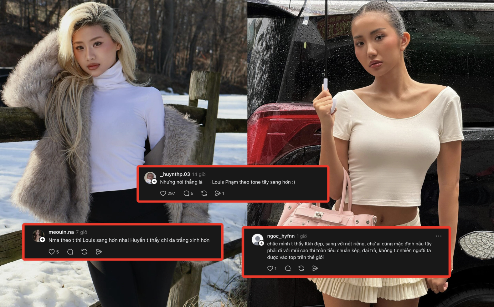 Phát ngôn của Louis Phạm nhanh chóng thu hút sự chú ý kéo theo nhiều ý kiến tranh luận về việc: Ai Tây trước, ai Tây hơn? Và ai mới là người thực sự phù hợp với thẩm mỹ này? Mỗi luồng quan điểm gọi tên một cô gái kèm những lý lẽ cá nhân vẫn chưa có hồi kết.