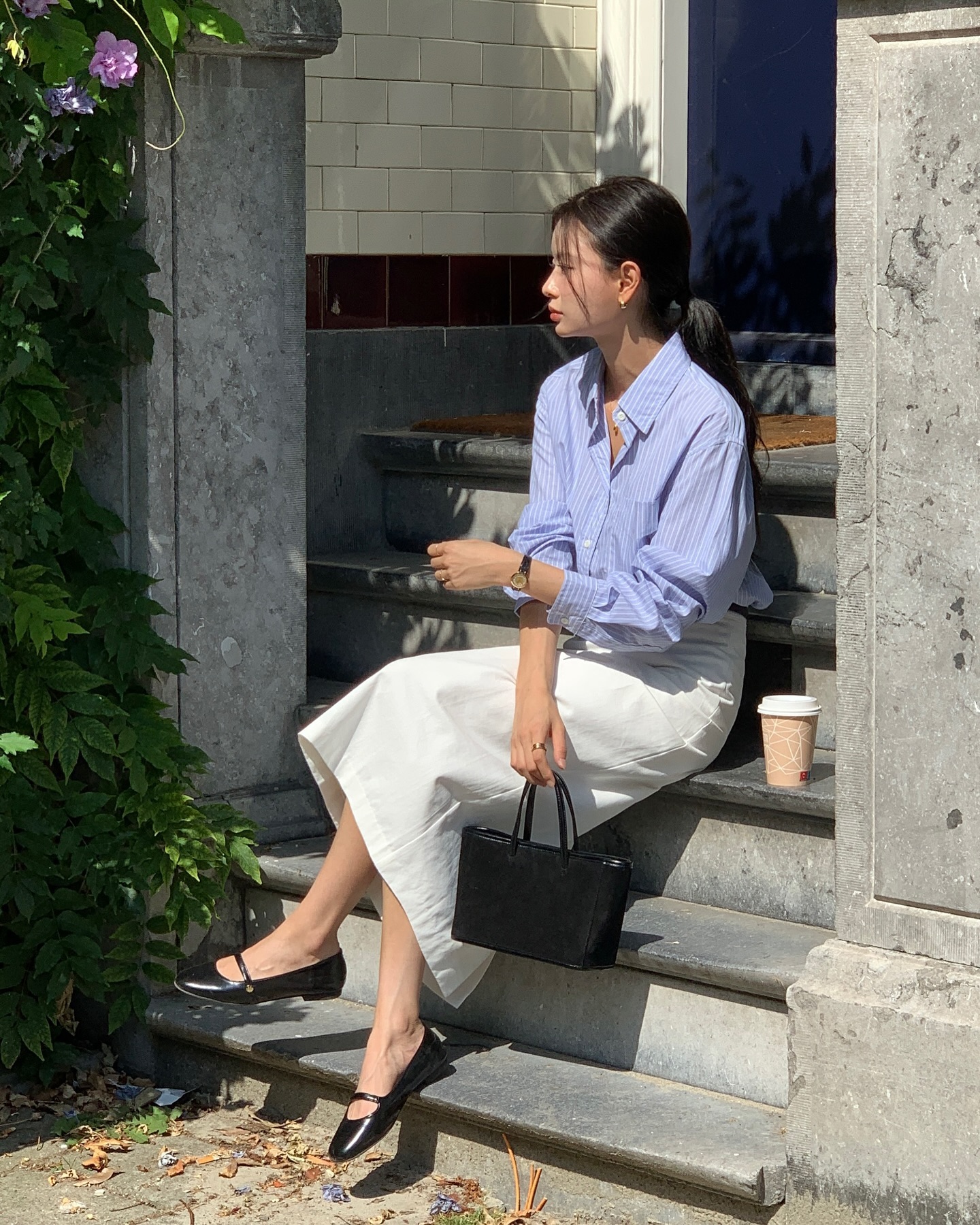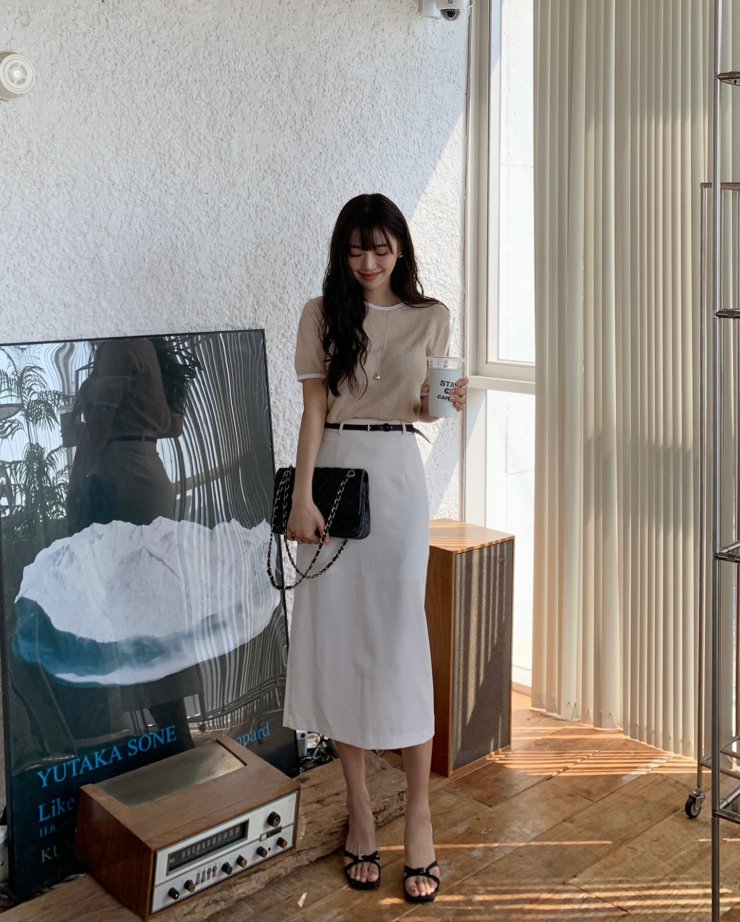 Sự kết hợp giữa chân váy trắng và áo pastel thường tạo nên tổng thể mềm mại, dễ chịu và rất phù hợp với phong cách nữ tính. Kiểu áo có thể là áo thun, áo blouse hoặc áo len mỏng tùy theo thời tiết. Một mẹo nhỏ là nên giữ phụ kiện ở mức tối giản để trang phục không bị rối mắt. Túi xách màu trung tính hoặc giày trắng, giày màu be sẽ giúp tổng thể trông hài hòa hơn.