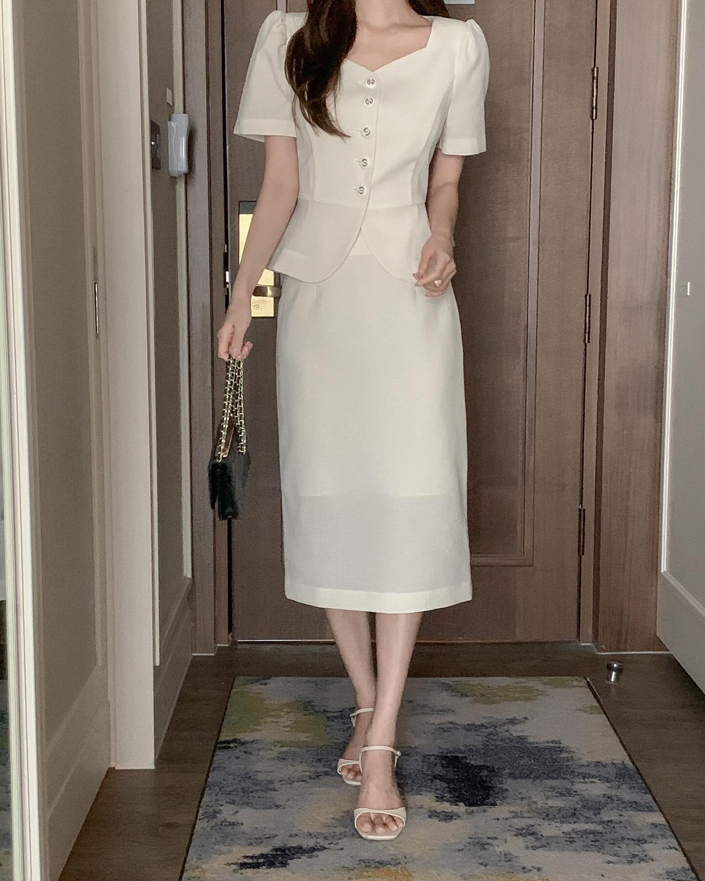 Một chiếc áo đứng dáng là lựa chọn lý tưởng khi muốn tạo vẻ ngoài gọn gàng, chỉn chu. Những thiết kế áo có form cứng cáp, đường cắt rõ ràng giúp tổng thể trang phục trở nên sang trọng hơn, đặc biệt khi kết hợp với chân váy trắng dáng bút chì hoặc dáng chữ A.