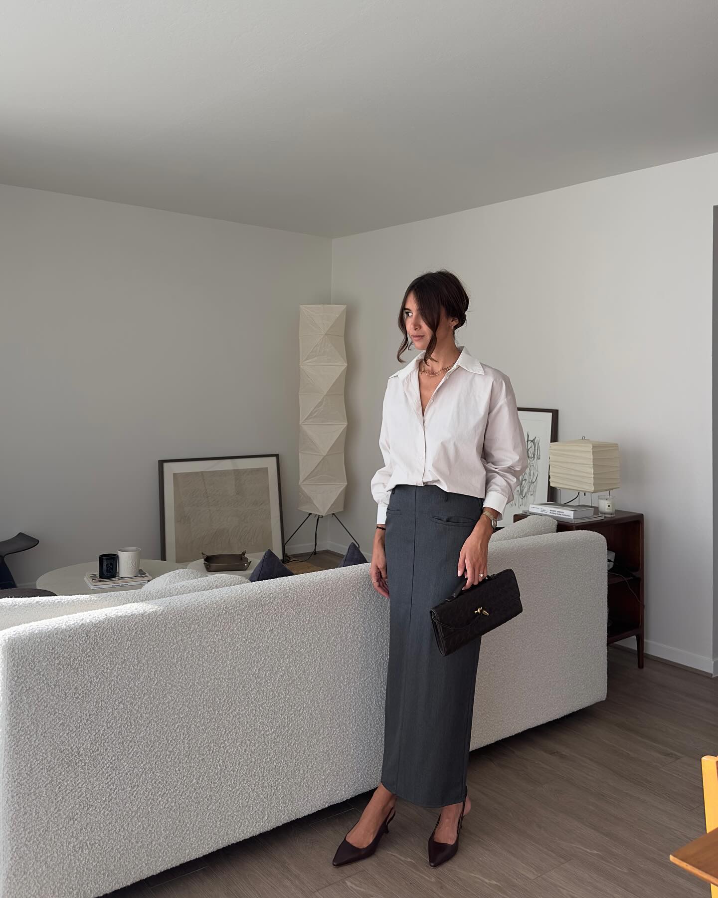 Chân váy dài và áo màu trung tính