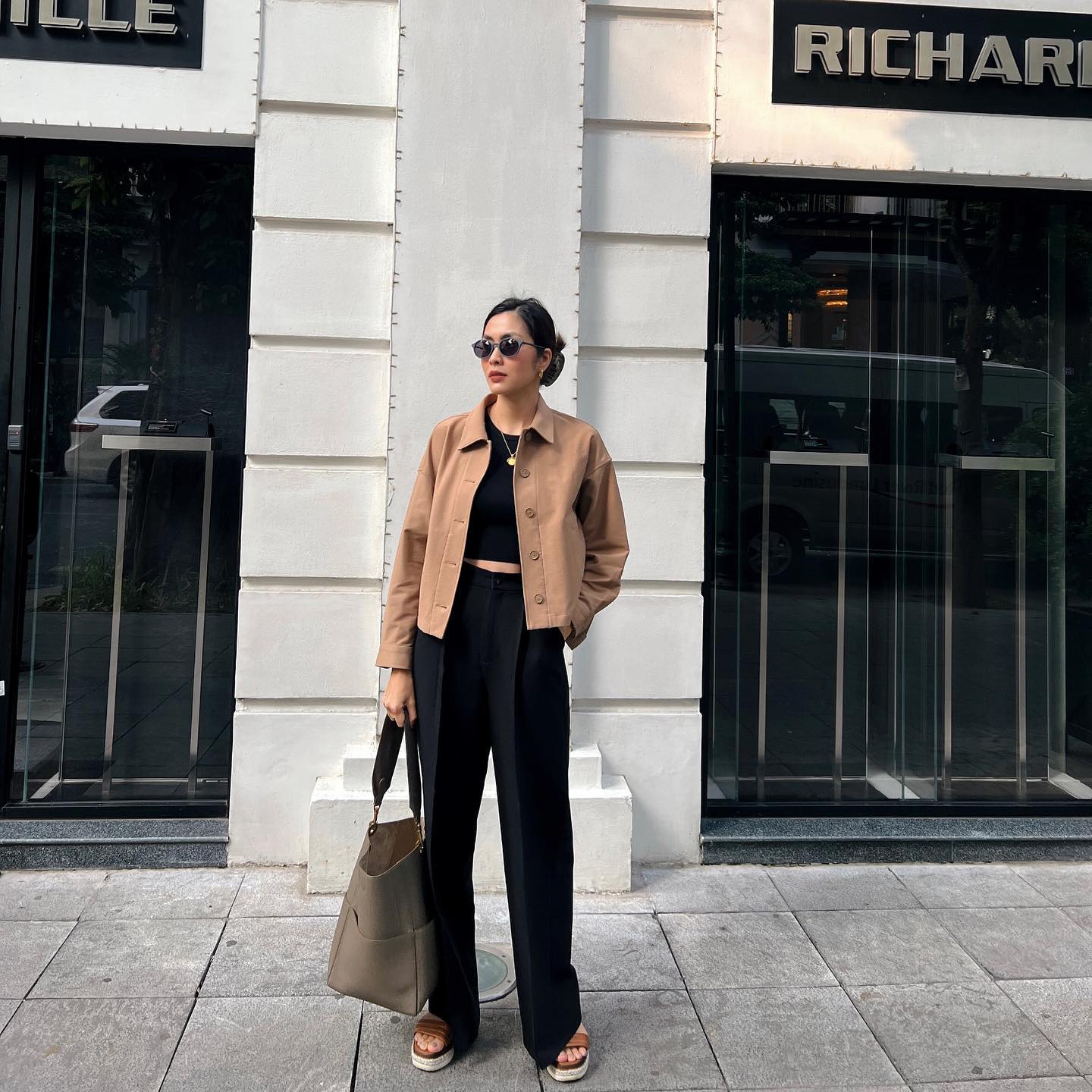 Giày loafers, sneaker trắng hoặc ankle boots đều có thể phối hợp linh hoạt. Đây là công thức lý tưởng cho những ngày bạn muốn ăn mặc chỉn chu nhưng không quá cầu kỳ, phù hợp cả đi làm lẫn dạo phố cuối tuần.