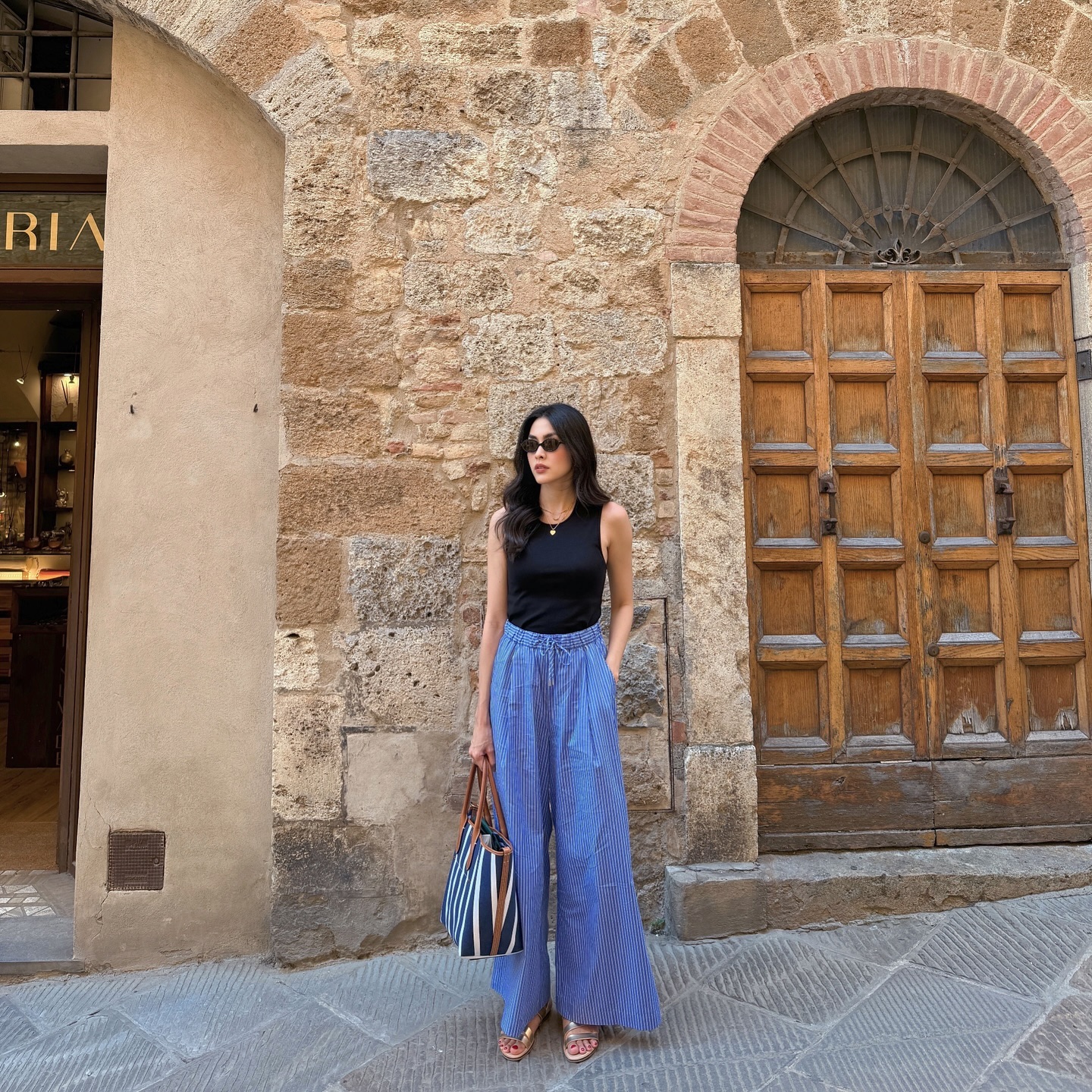 Để outfit không trở nên quá "chói", bạn nên chọn quần ống rộng có tông màu trung tính như trắng, đen, be hoặc xám. Cách phối này giúp cân bằng thị giác và giữ được nét sang trọng. Nếu muốn nâng tầm phong cách, hãy sơ vin gọn gàng và thêm một đôi giày cao gót mũi nhọn hoặc sandal quai mảnh.