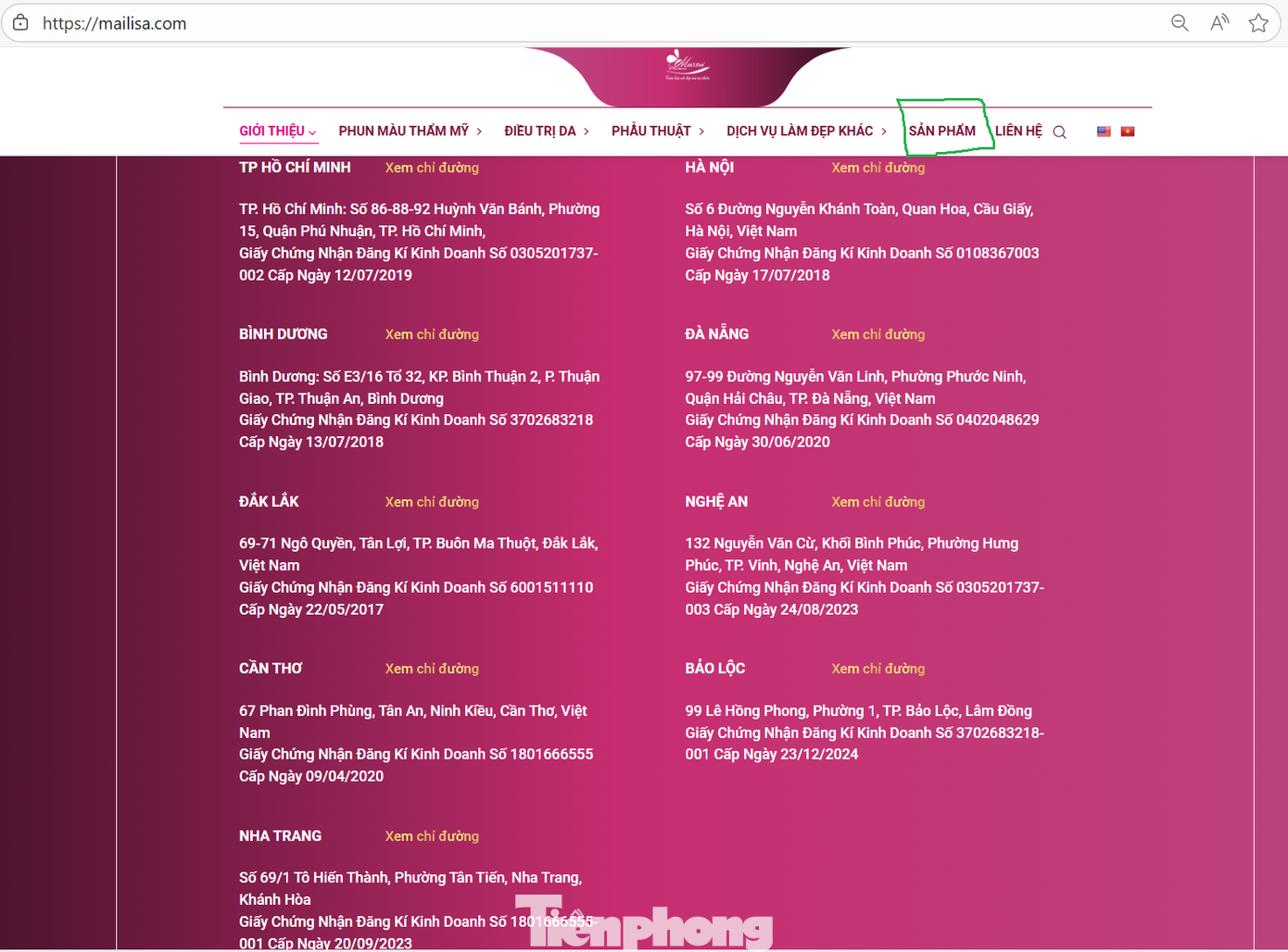 Theo ghi nhận từ Tiền Phong, truy cập vào website Mailisa.com - trang chính của Thẩm mỹ viện Mailisa trên thanh công cụ mục “Sản phẩm - Product”, vốn xuất hiện ổn định trong thời gian dài, nay đã biến mất hoàn toàn.