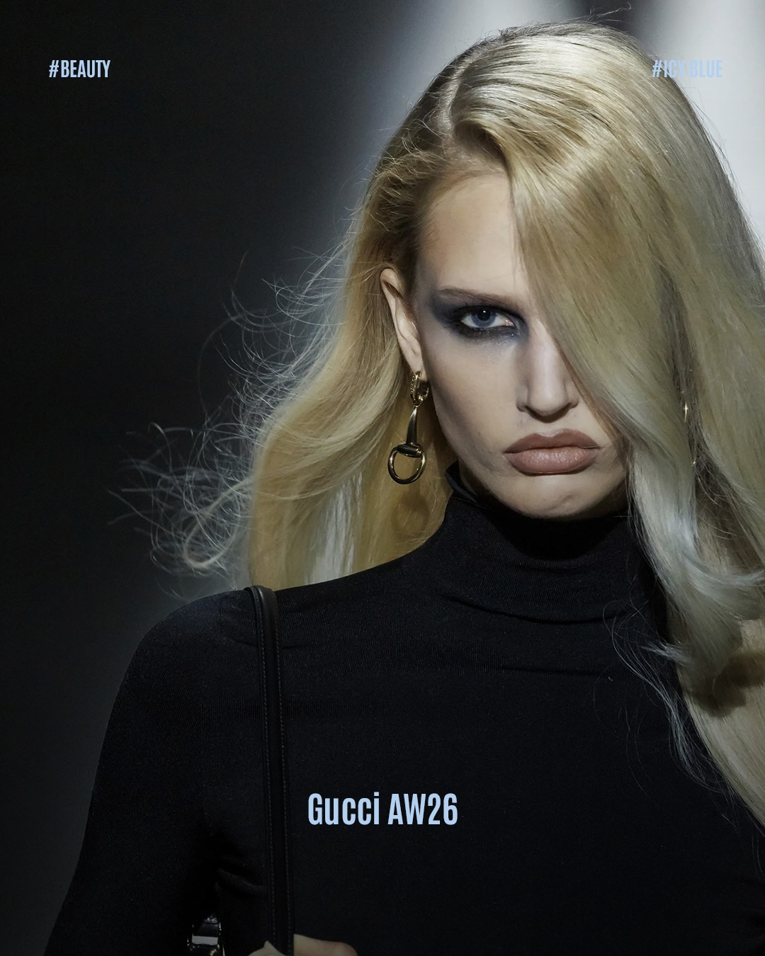 Nói về sự hồi sinh của màu mắt xanh, chúng ta không thể không nhắc đến những biểu tượng đã đặt nền móng cho xu hướng này. Hình ảnh huyền thoại của Kate Moss trên sàn diễn Gucci thời Tom Ford vẫn luôn là một "sách giáo khoa" cho giới beauty nhờ vẻ trong trẻo nhưng đầy quyền lực. Bước sang đầu năm nay, các nhà mốt lớn đã chính thức đưa Icy Blue trở lại đường đua với những biến tấu đẳng cấp.