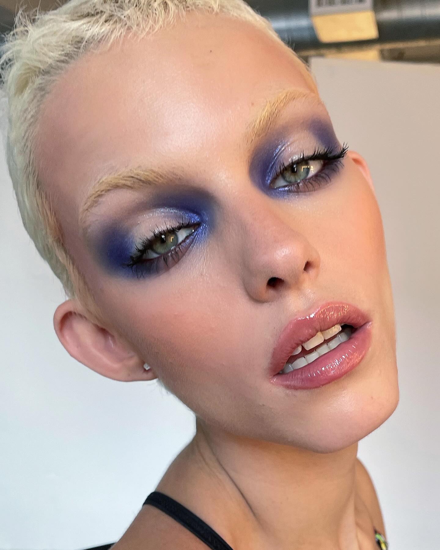 Trong khi Dior mang đến những mảng màu xanh trong suốt như nước đá kết hợp cùng môi bóng tối giản, thì Chanel lại tạo nên một cú nổ lớn với Denim Collection trẻ trung. Sự kết hợp giữa chất liệu denim bụi bặm và tông mắt xanh chất chơi, có chút ánh bạc đã tạo nên một tổng thể vừa cổ điển vừa thời thượng. Không đứng ngoài cuộc chơi, Prada gây ấn tượng với những đường kẻ mắt xanh sắc lẹm, còn Fenty Beauty của Rihanna thì đẩy xu hướng này lên cao trào khi biến sắc xanh thành một trải nghiệm toàn diện từ highlight gò má đến đôi môi phủ sương đầy ma mị.