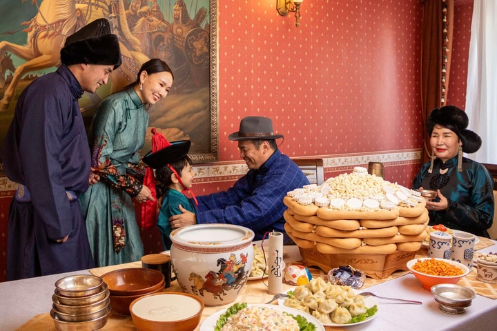 Tại Mông Cổ, Tết Nguyên đán được gọi là Tsagaan Sar, một trong những dịp lễ quan trọng nhất trong năm. Mâm cỗ Tsagaan Sar mang đậm dấu ấn văn hóa du mục với các món như bánh ngọt xếp tầng (Ul boov), thịt cừu luộc, bánh bao nhân thịt cừu và sữa ngựa lên men.