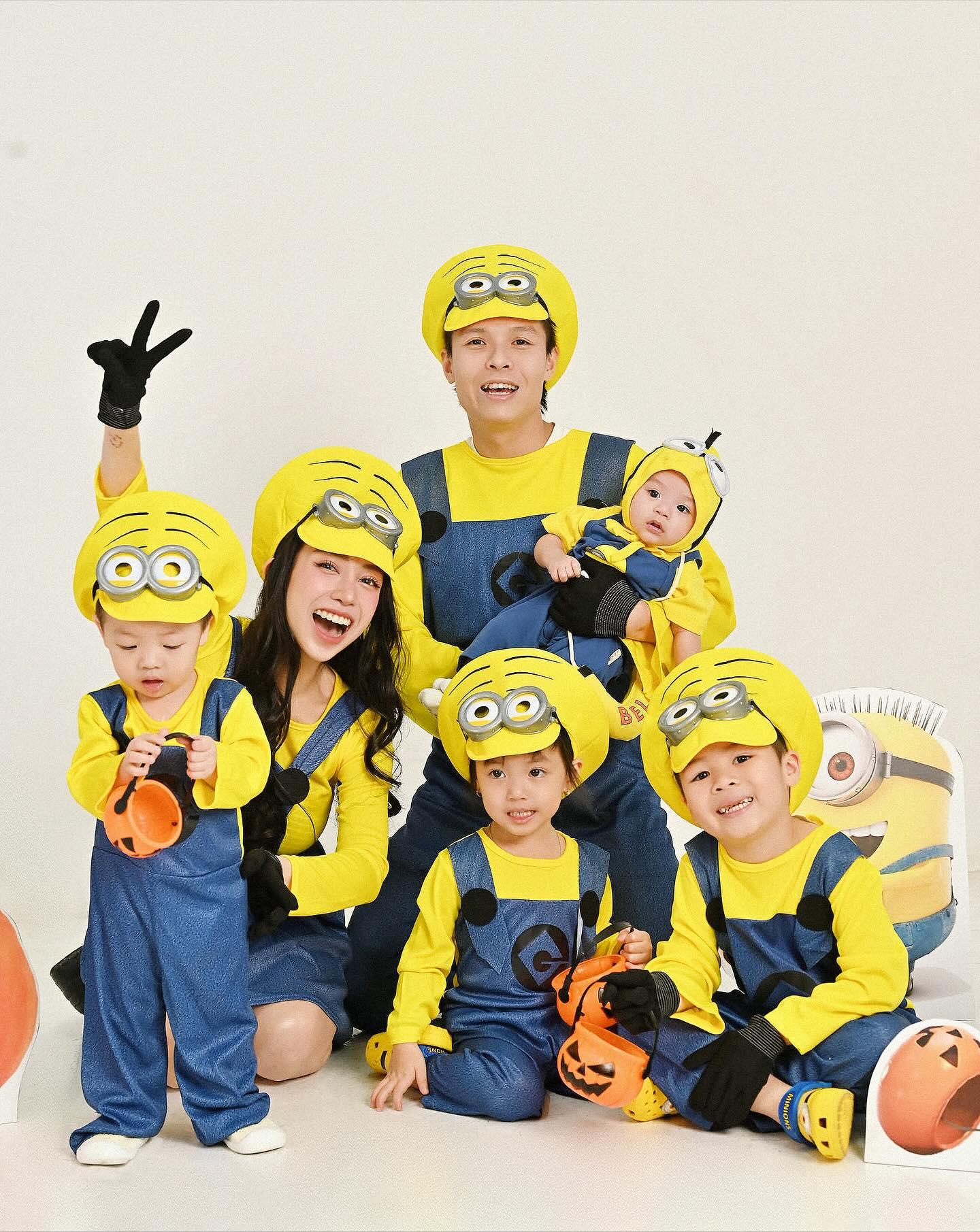Mỗi mùa Halloween đến, dân mạng lại được dịp trầm trồ trước những màn hóa trang sáng tạo, đầu tư công phu của các bé. Nhưng xét về độ chịu chơi hay đông "nhân khẩu" nhất thì khó ai vượt qua được gia đình nhà Joyce Phạm - ái nữ nhà đại gia Minh Nhựa. Cô cùng chồng và bốn nhóc tỳ đã có màn xuất hiện cực kỳ nổi bật khi cả gia đình 6 người cùng hóa thân thành nhân vật Minion.
