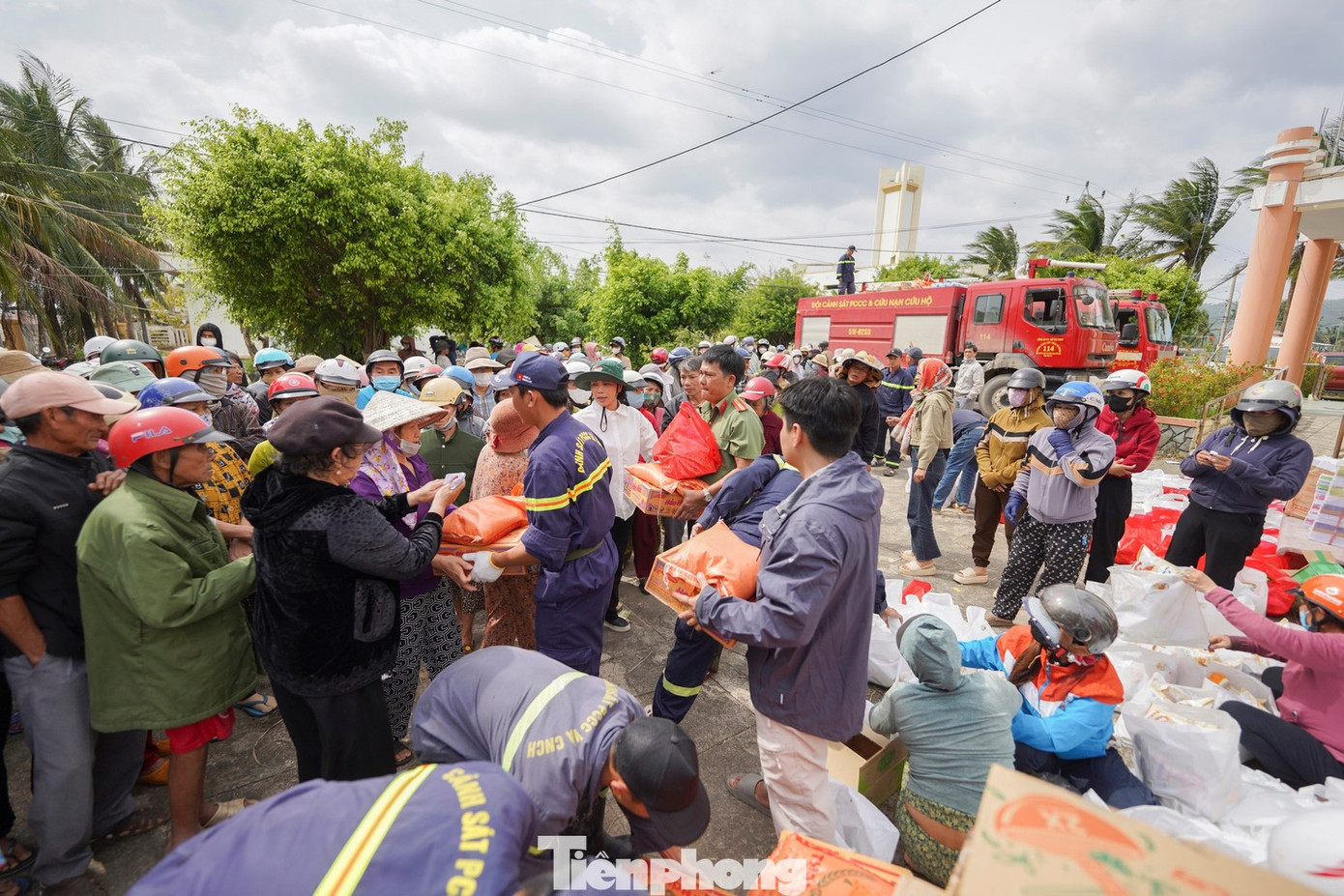 Cảnh sát Phòng cháy chữa cháy TP.HCM ( PC07) hỗ trợ bà con vùng lũ. Ảnh: Phạm Nguyễn